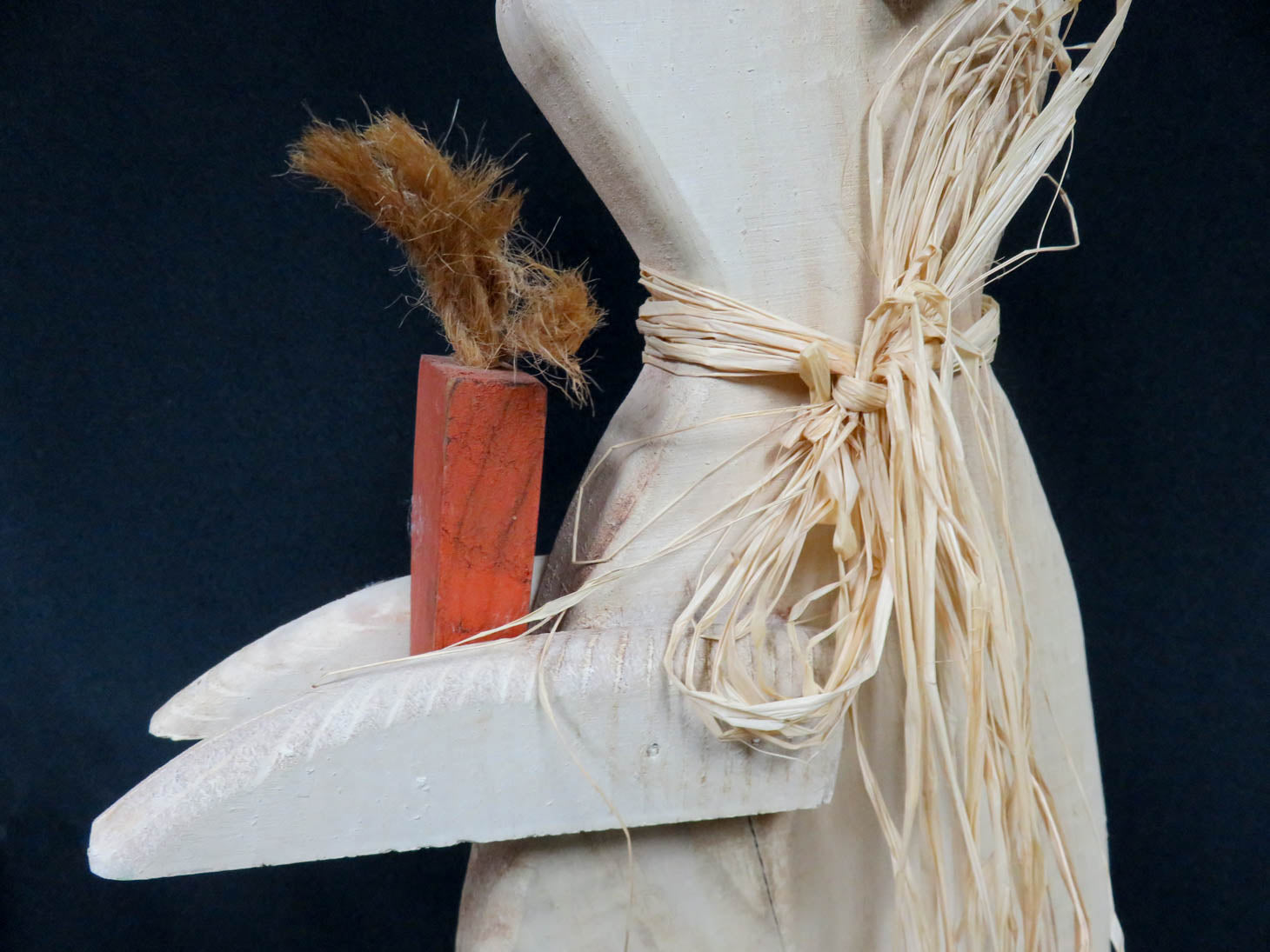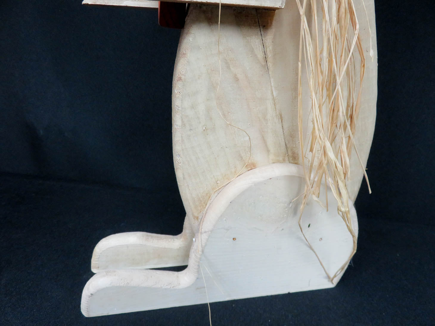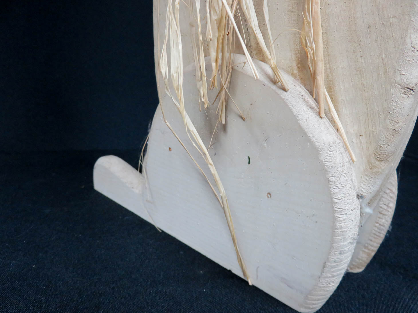 Wooden rabbit holding carrot, raffia bow, adjustable ears