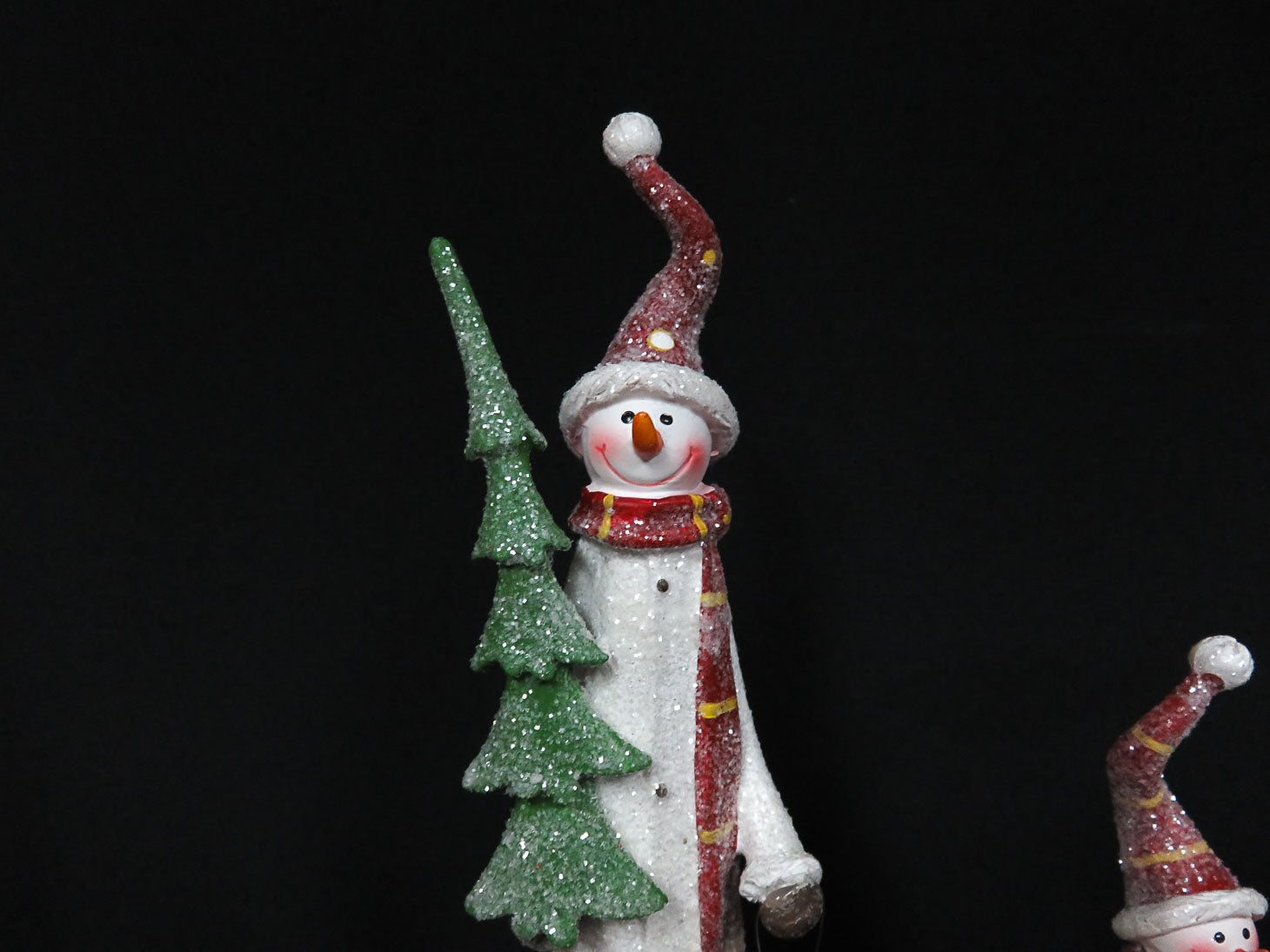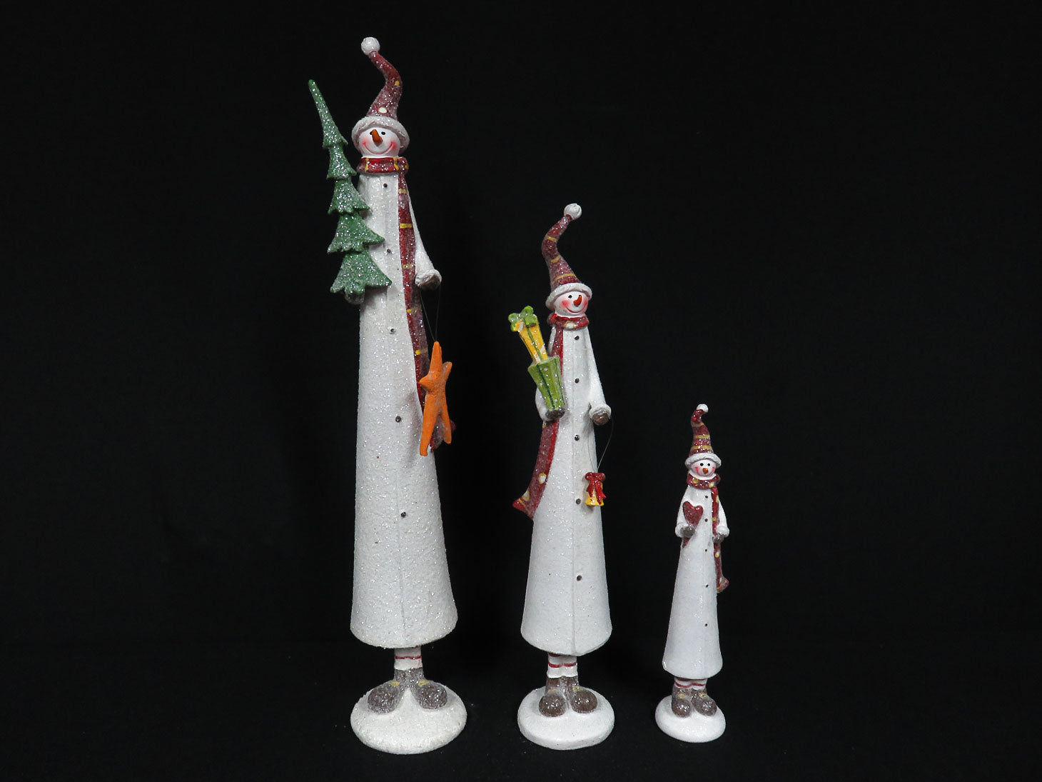 Set of 3, thin, white glitter, holding various items, tall red hats