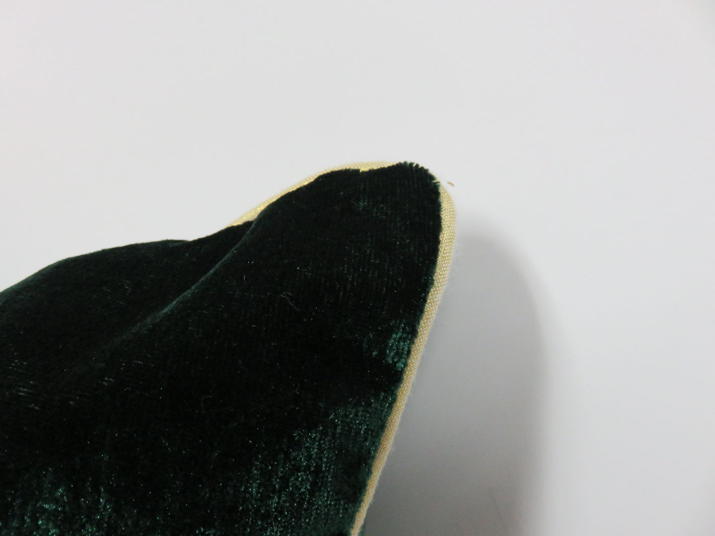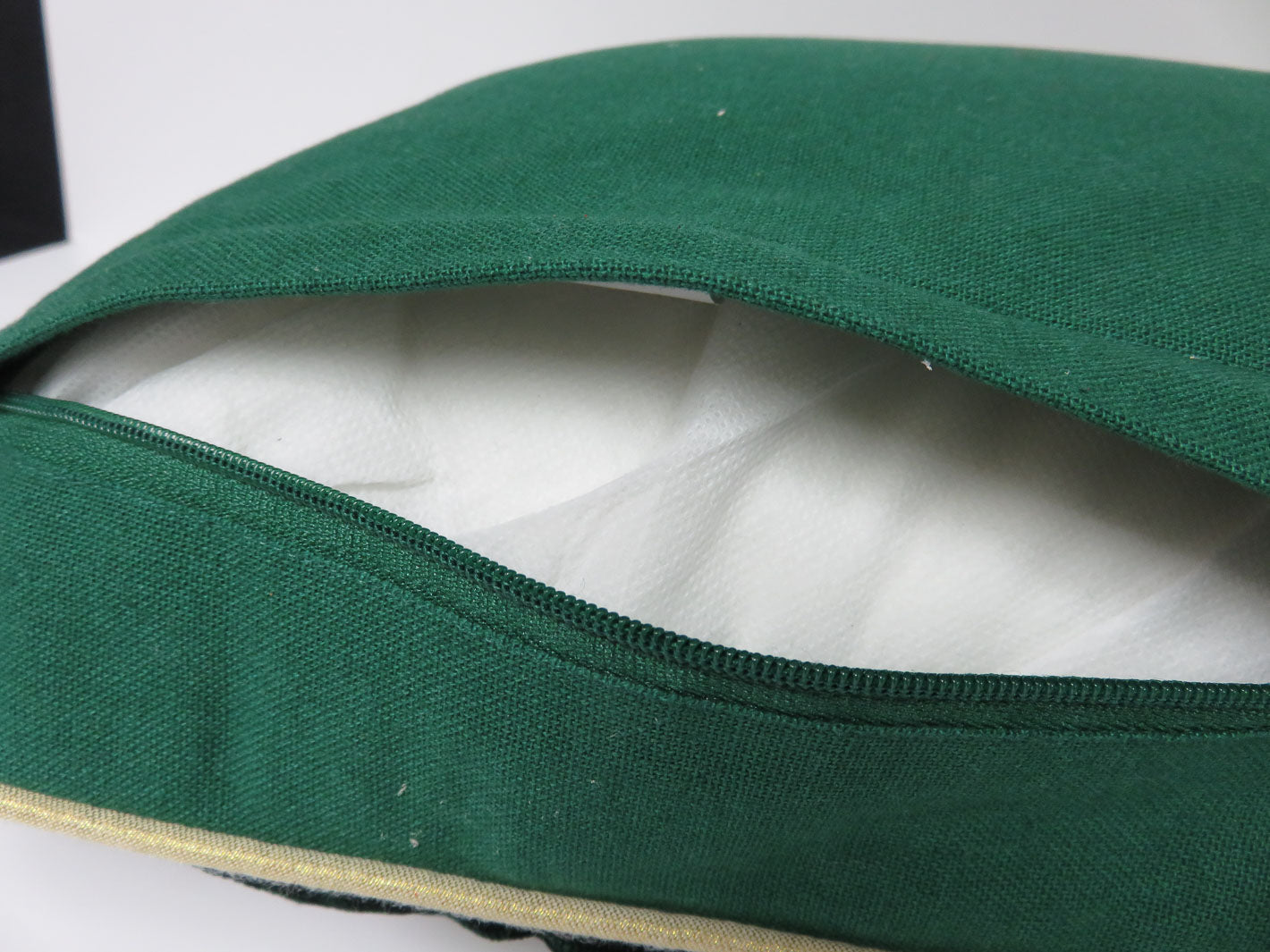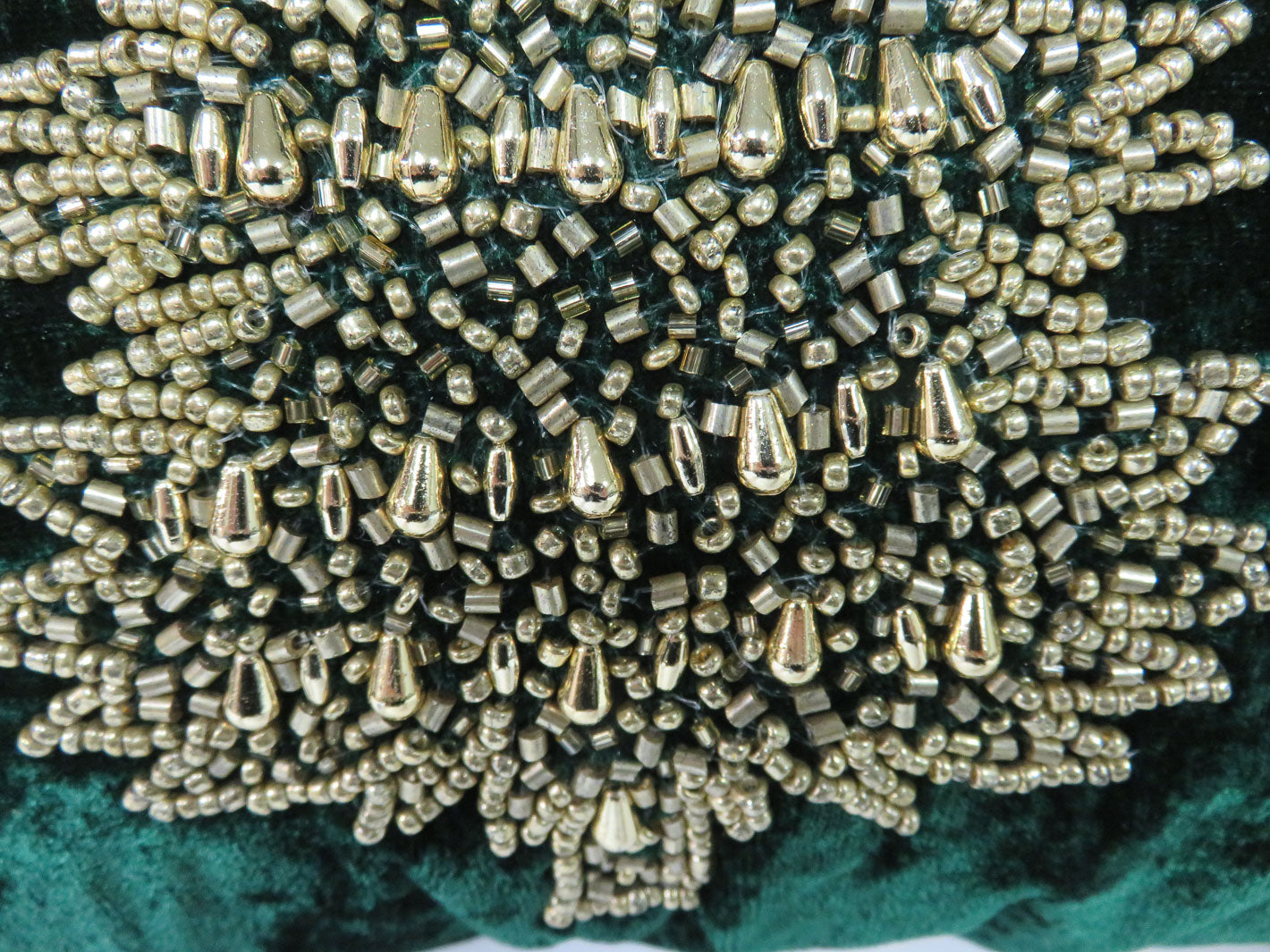 Item Number: 28131-29 Rectangular, green velvet with gold beaded trees, gold cording, zipper, poly filled 19" x 14"