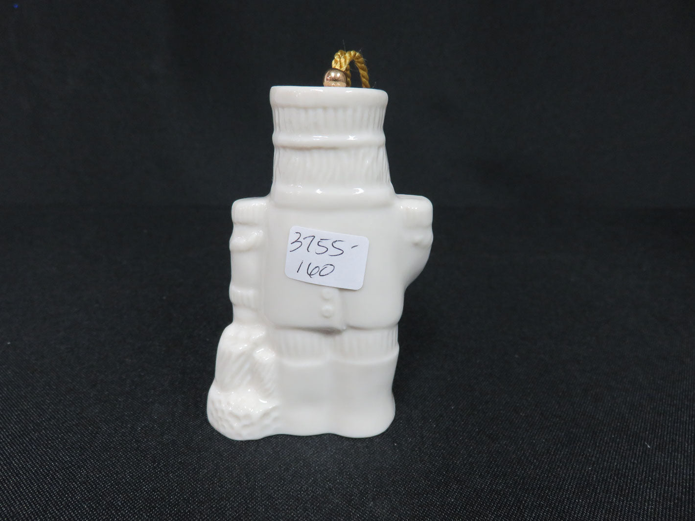 "Nutcracker" bell ornament, ivory with shamrock in red box