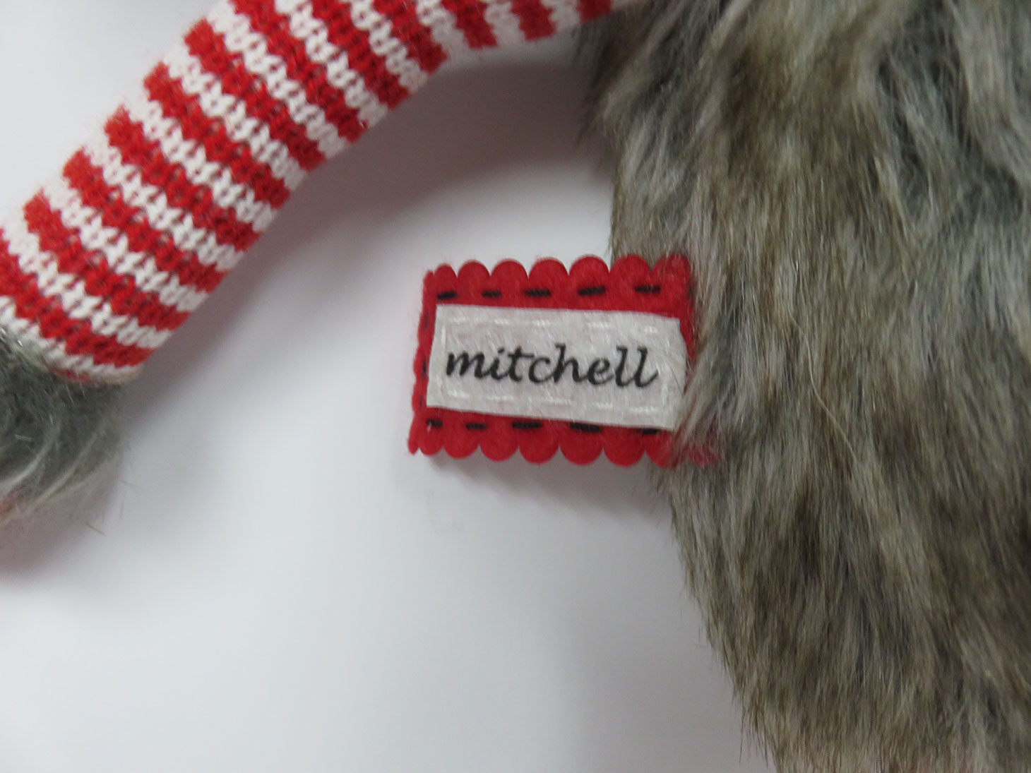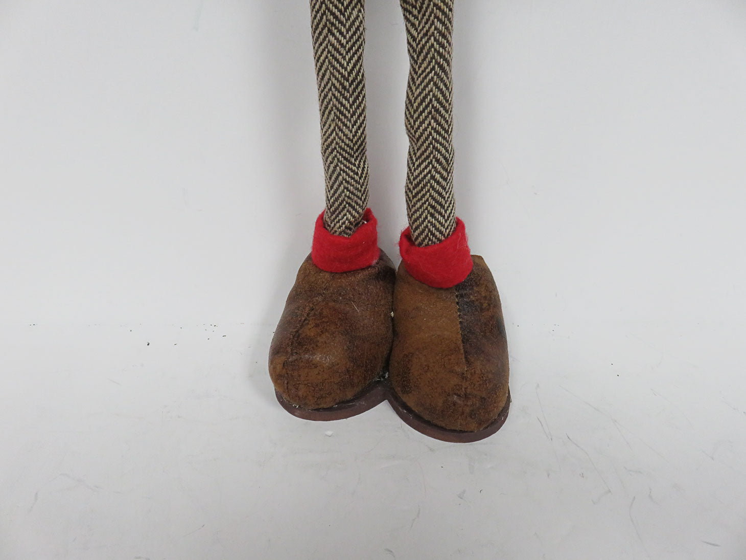 Mitchell the Moose with faux fur vest, red felt hat, leather boots