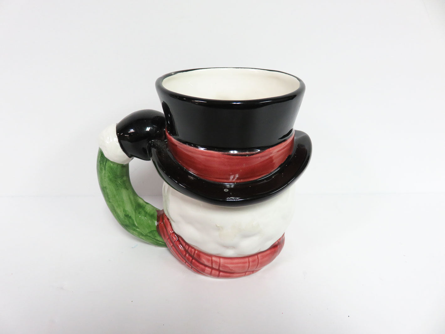 4 pc: "Snow gentlemen in green jacket and top plate, mug, and salt & pepper