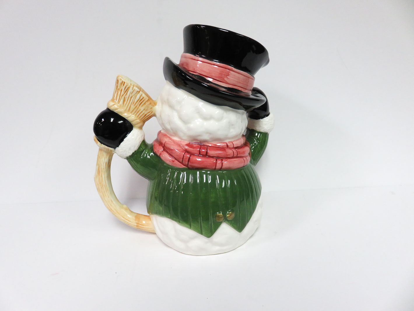 "Snow gentleman" in green jacket tipping his hat, 2.5 quart
