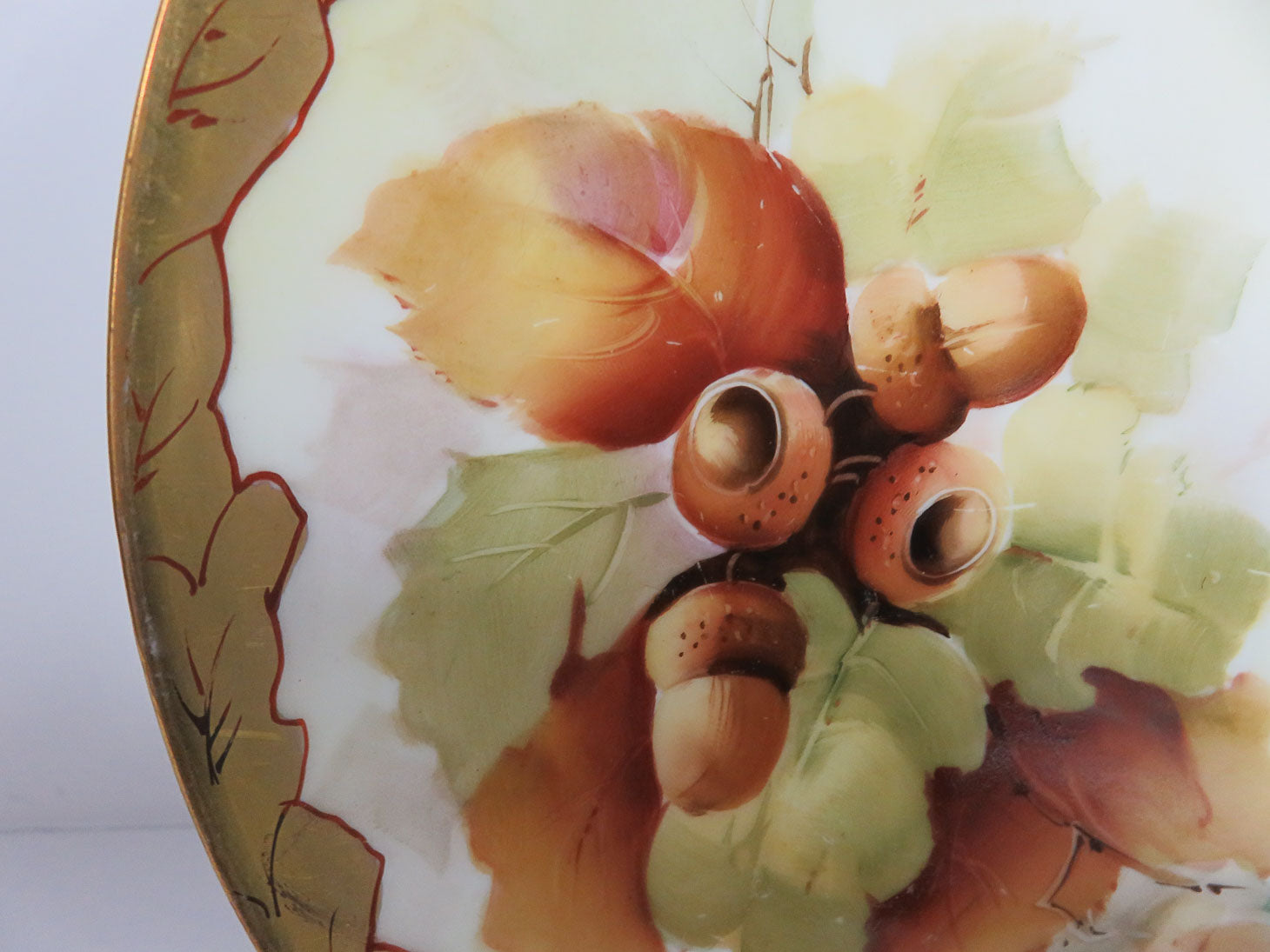 Acorns and oak Leaves with thick gilt boarder.
