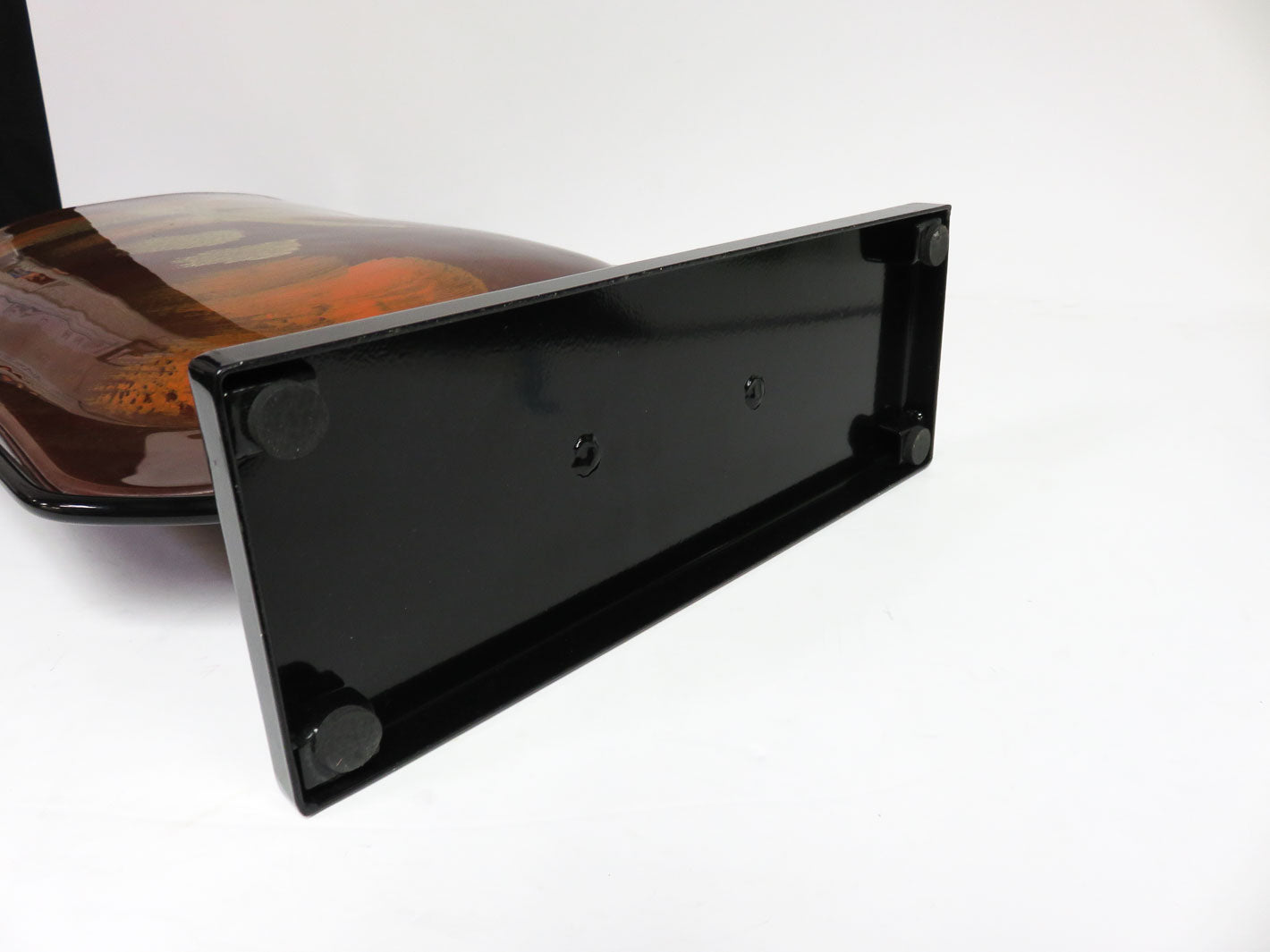 Brown gold and rust glass abstract design pocket vase in black metal frame