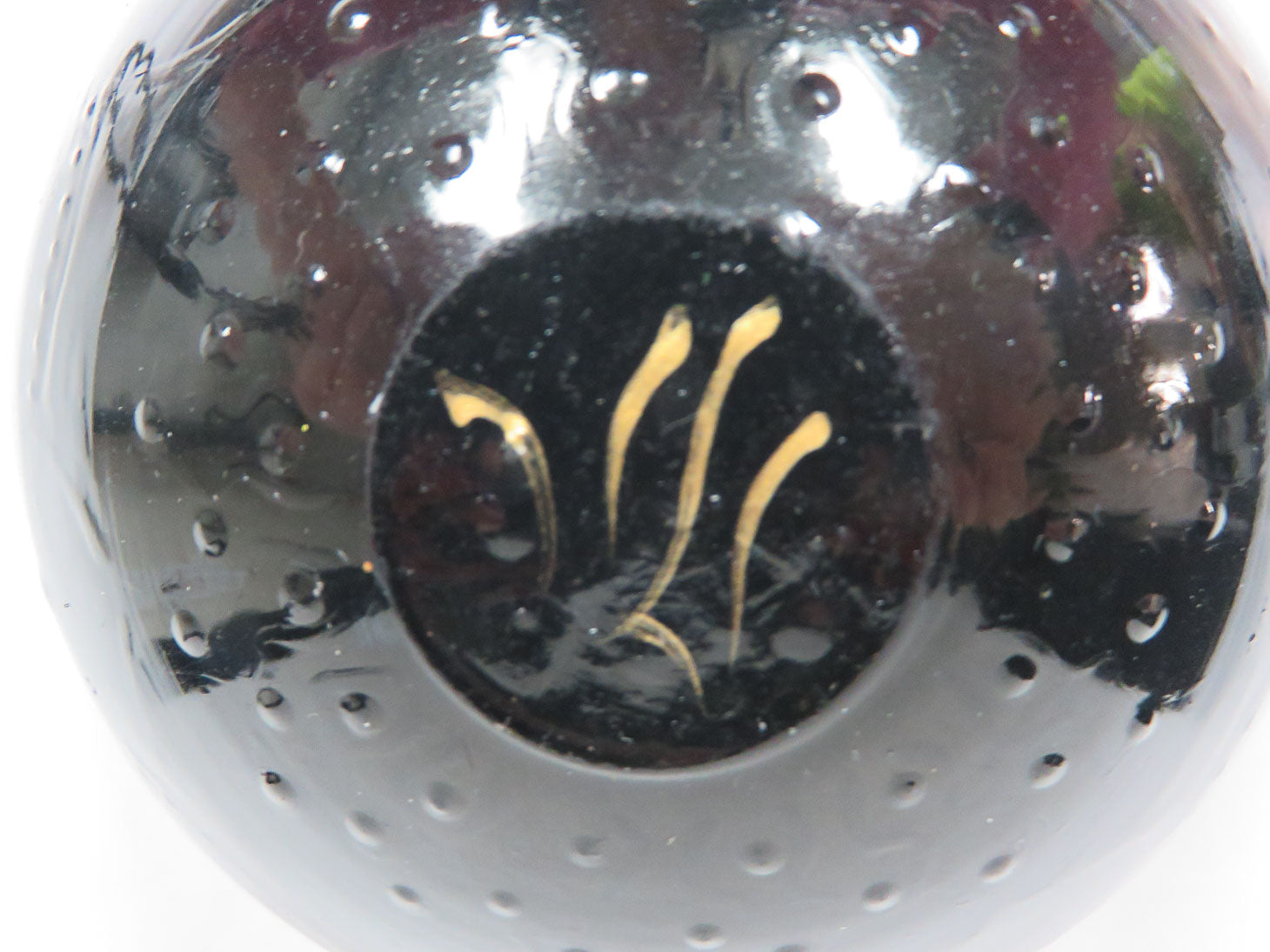 By Susan Schmidt, one of a kind, hand-painted gold chevron edge, red with black and gold teardrops 4.75" x 2.25"