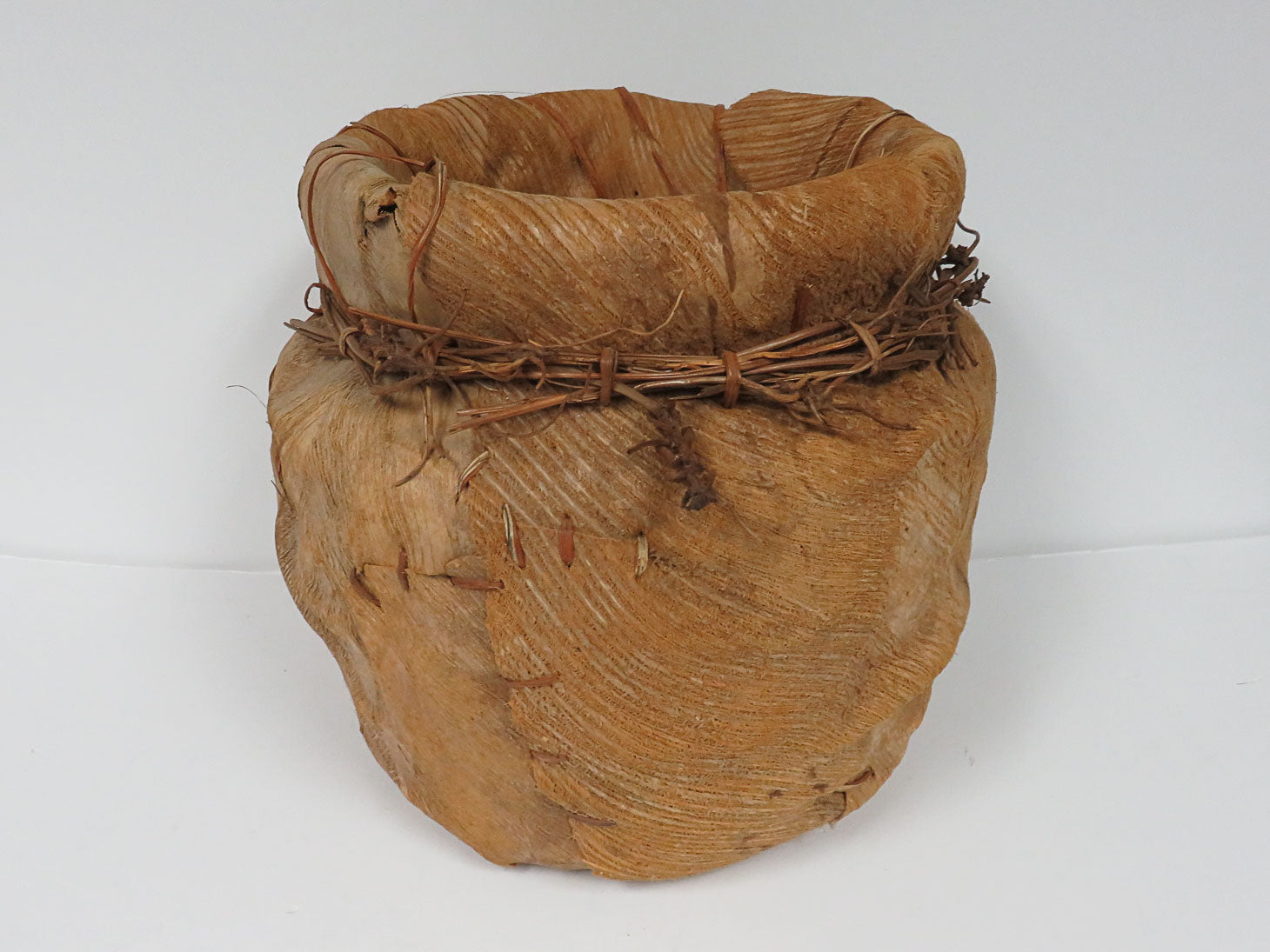 Banana husk reed woven basket, twig band