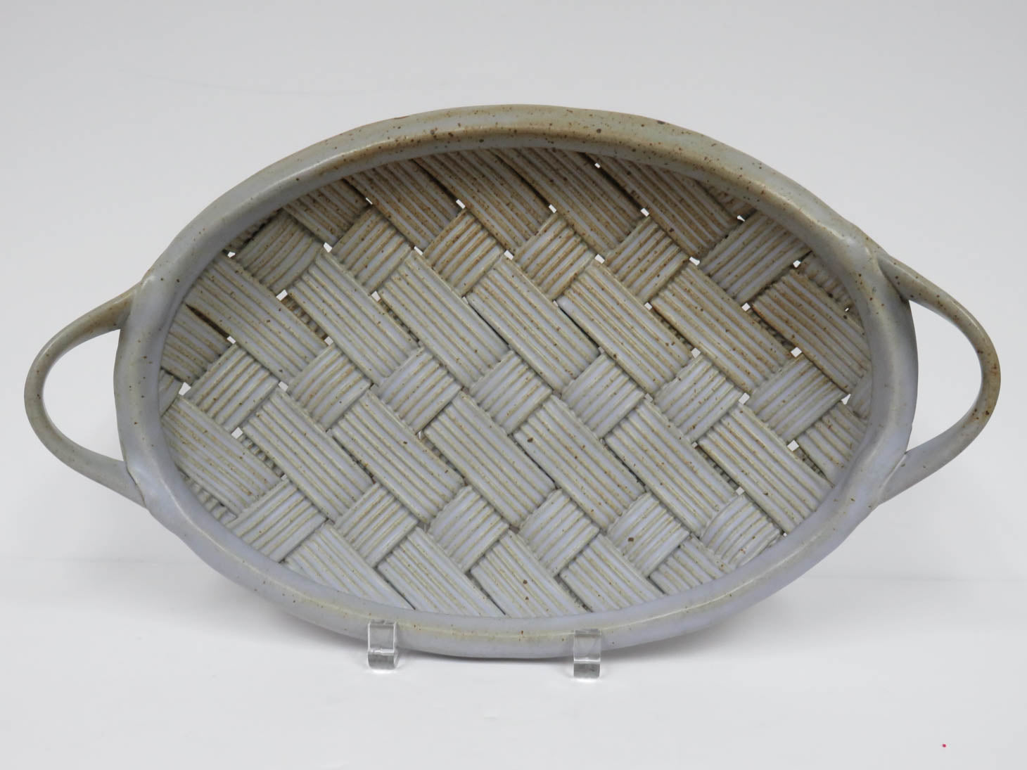 Item Number: 20231-16 Parmentier Pottery. Oval with handles in a greyish-lavender glaze. 15.5" x 9.5" x 2"
