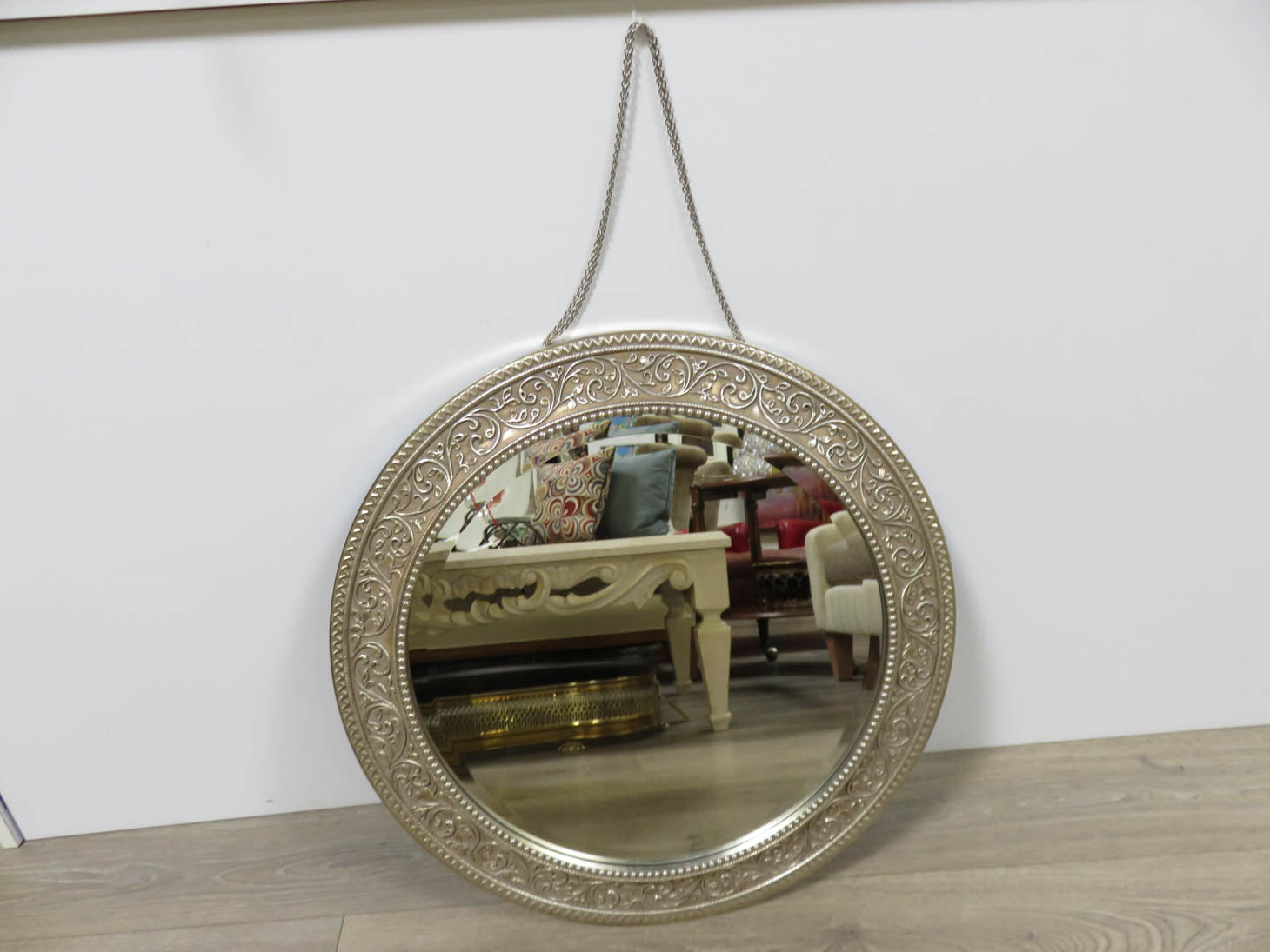Hanging, round, beveled, with silver chain for hanging