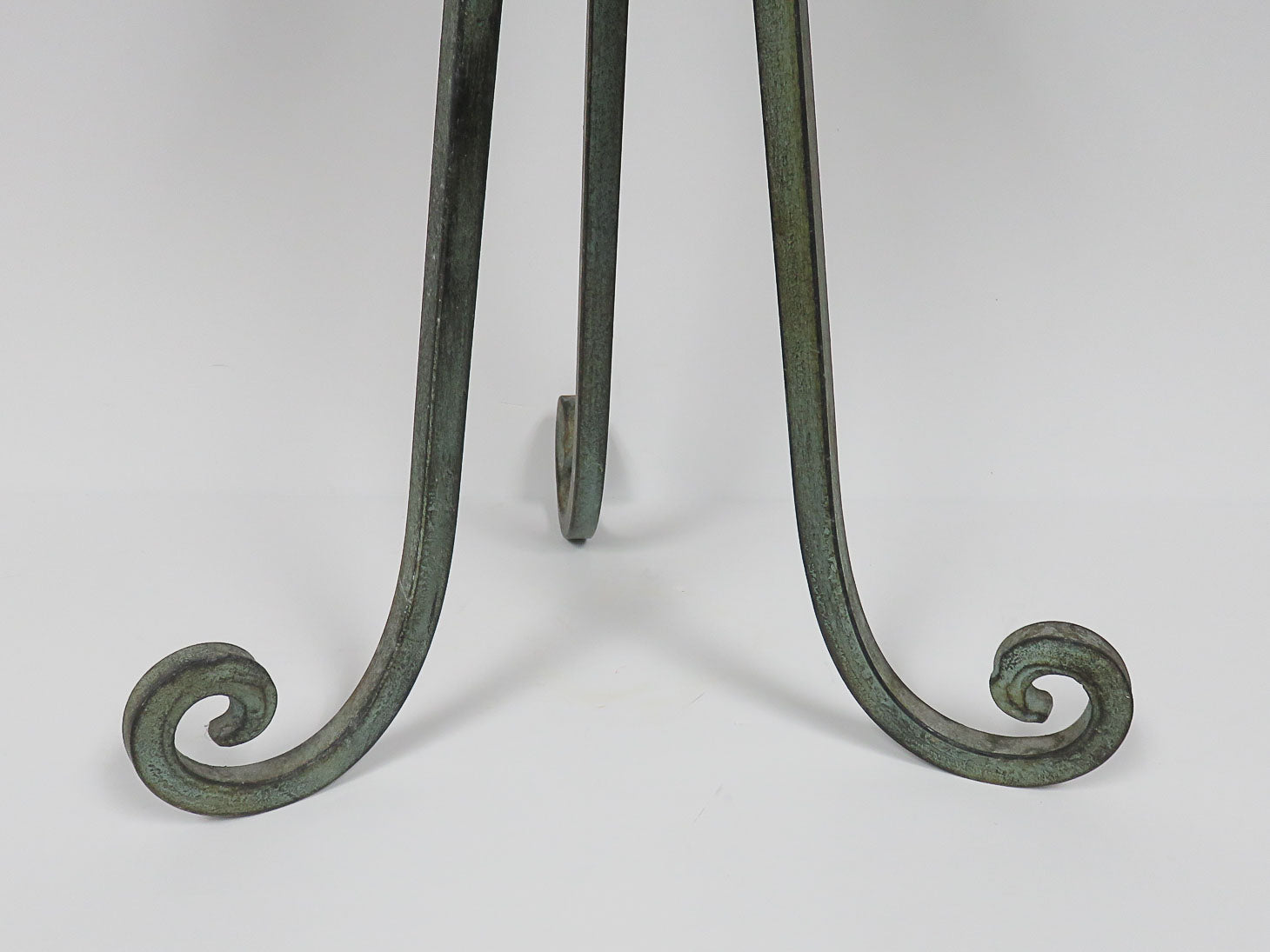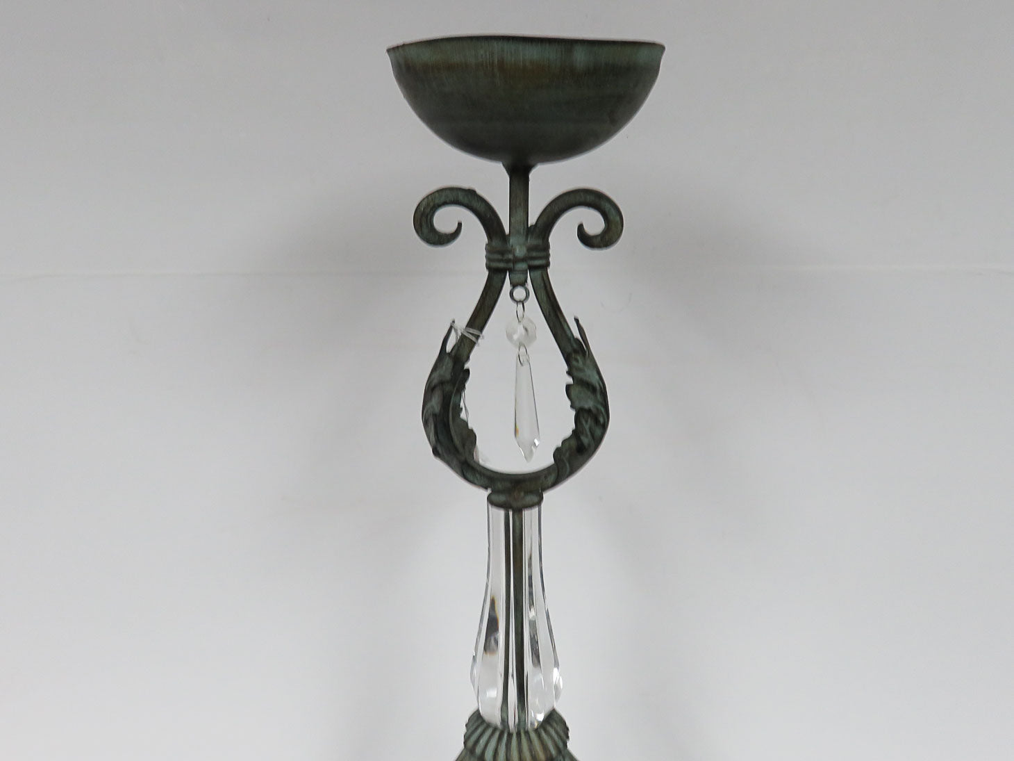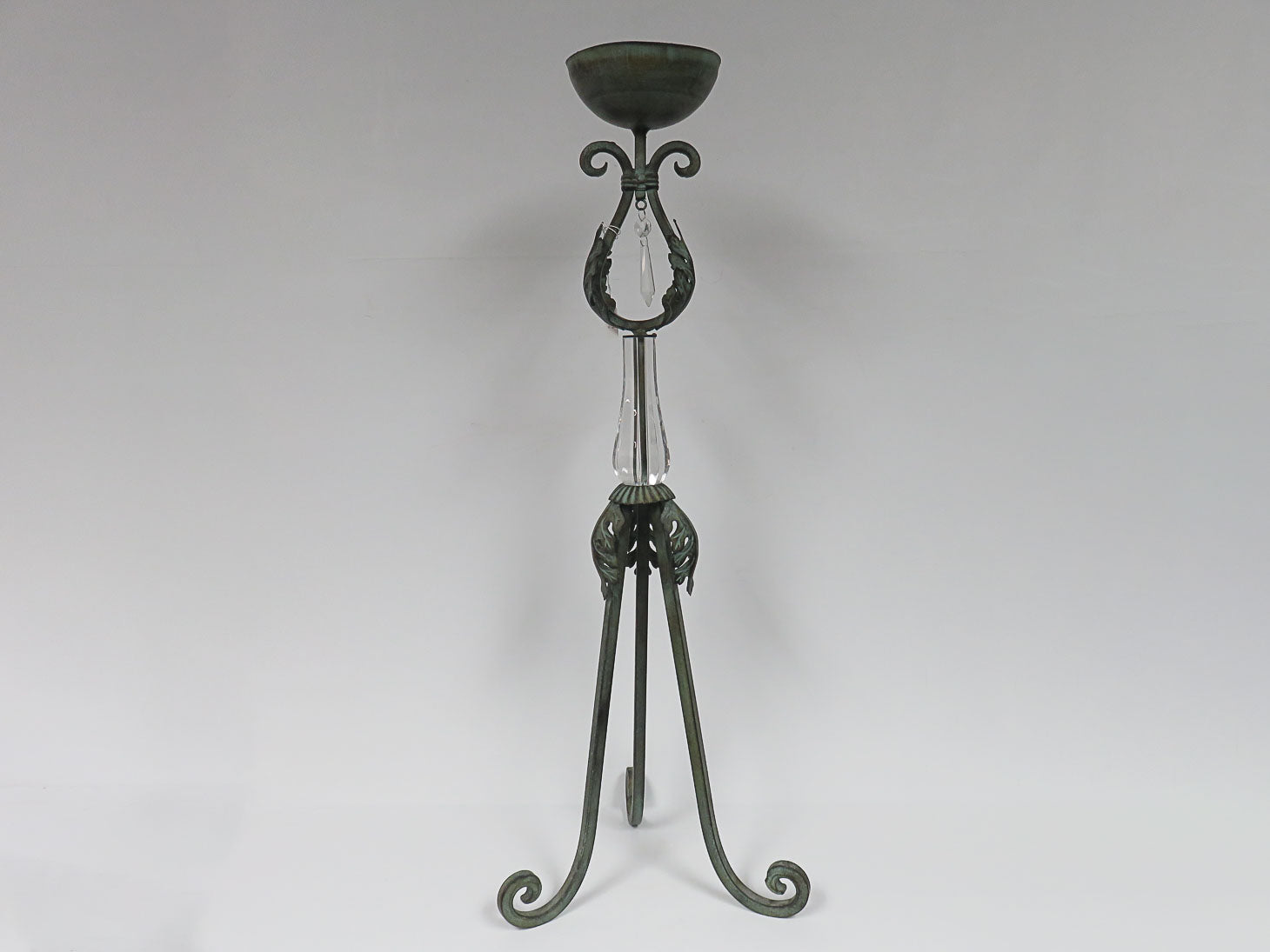Tripod base, acanthus leaf accents, plastic teardrop, round bowl top