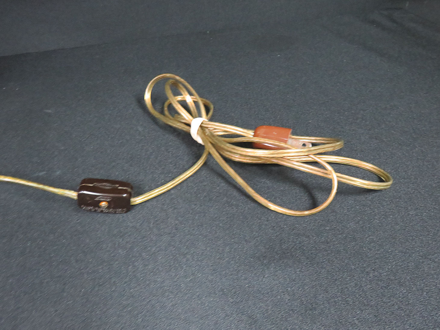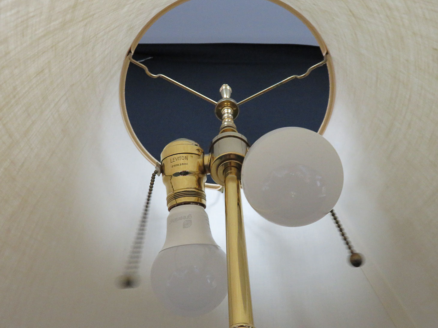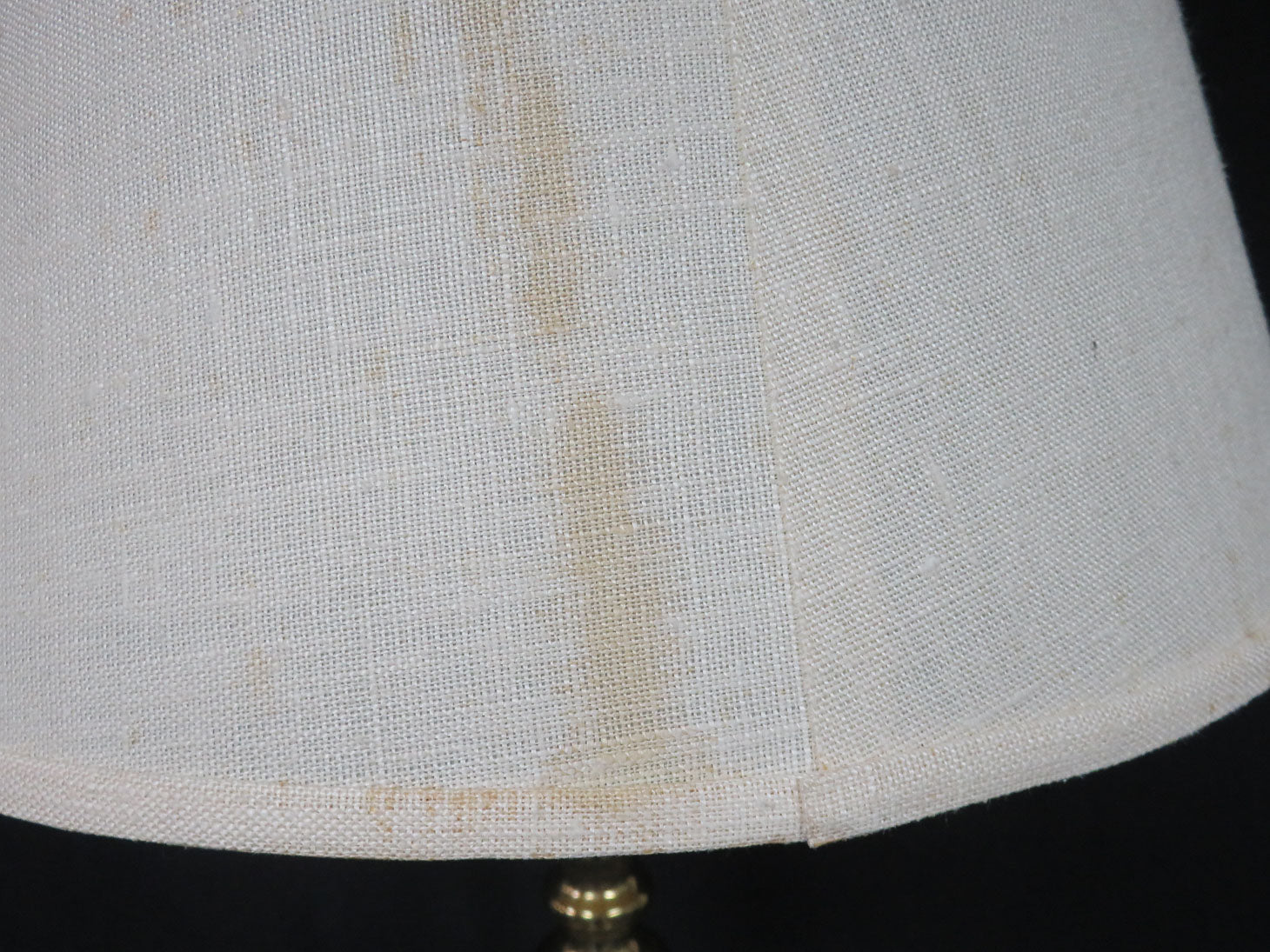 Two bulbs, double chain, Square base, very heavy, spots on lamp and shade