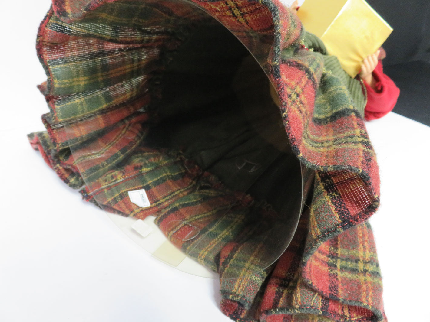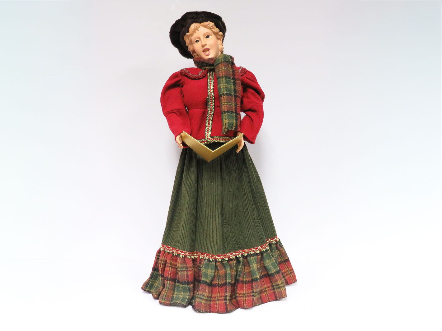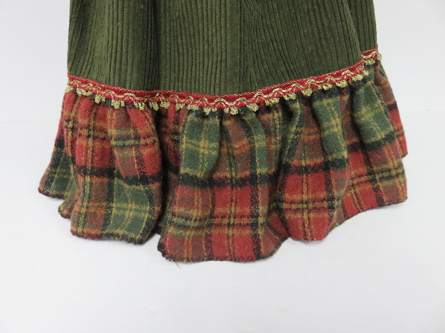 Item Number: 10645-192 Tall woman, full green skirt, red jacket and plaid scarf, fur hat, holding gold folder. 28" H