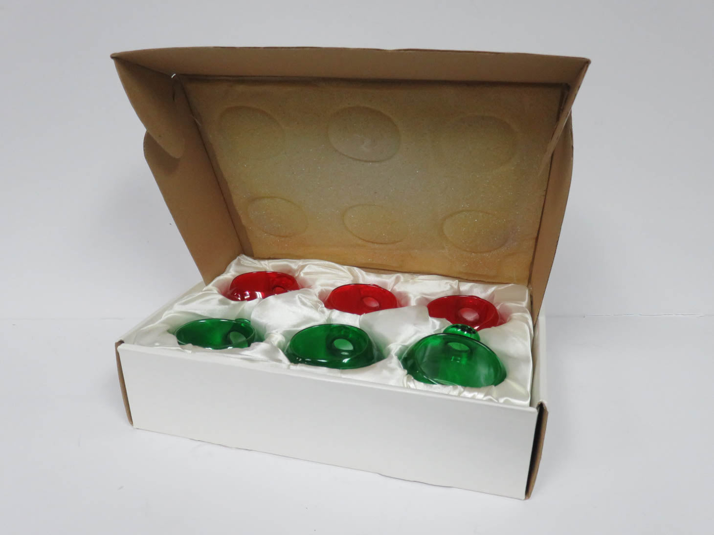 Set of 6, Napkin ring vases, 3 red and 3 green.