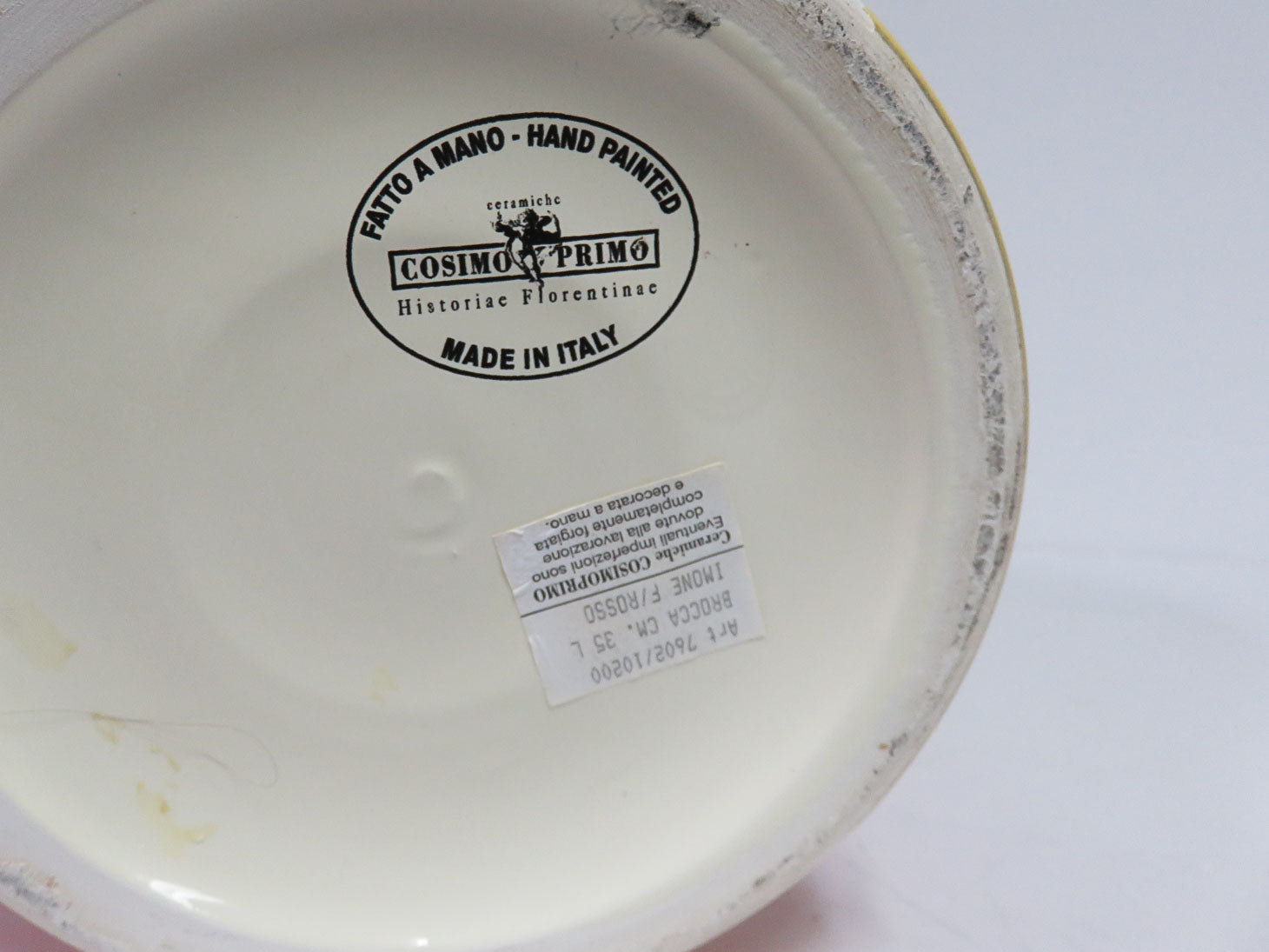 Item Number: 6442-27 Cosimo Primo, hand-painted pitcher, red with yellow lemons and green leaves 14" H