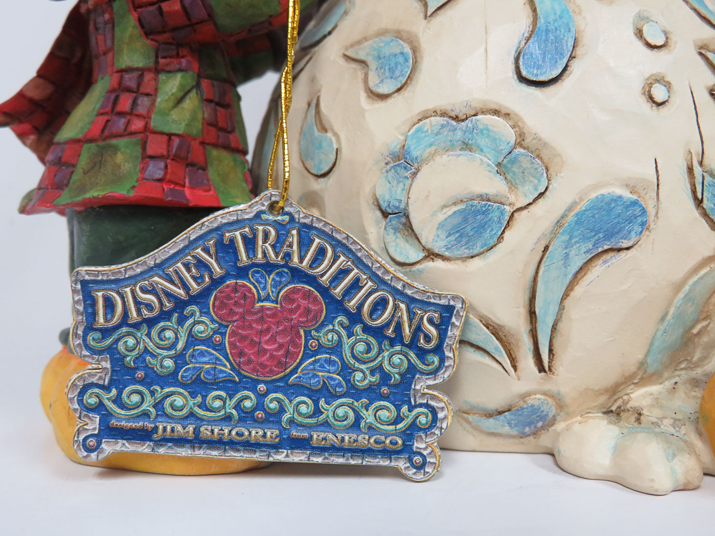 "Magic comes in many shapes" Disney & Jim Shore cream snowman with blue decorative design with Mickey, Minnie and Pluto