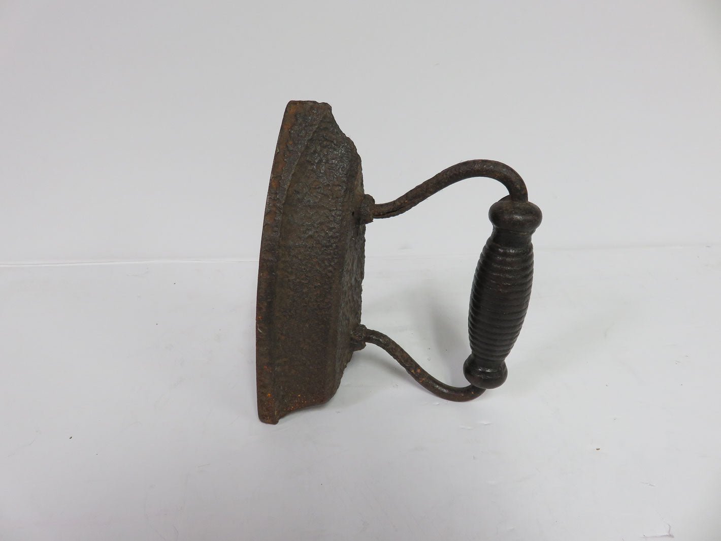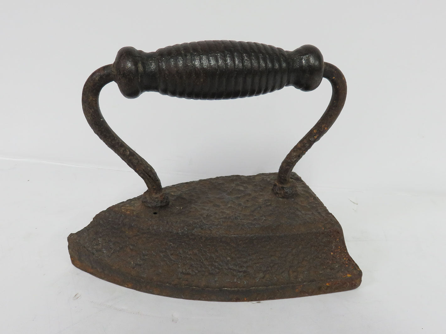 Vintage Iron shaped cast iron door stop. Wear consistent with age.