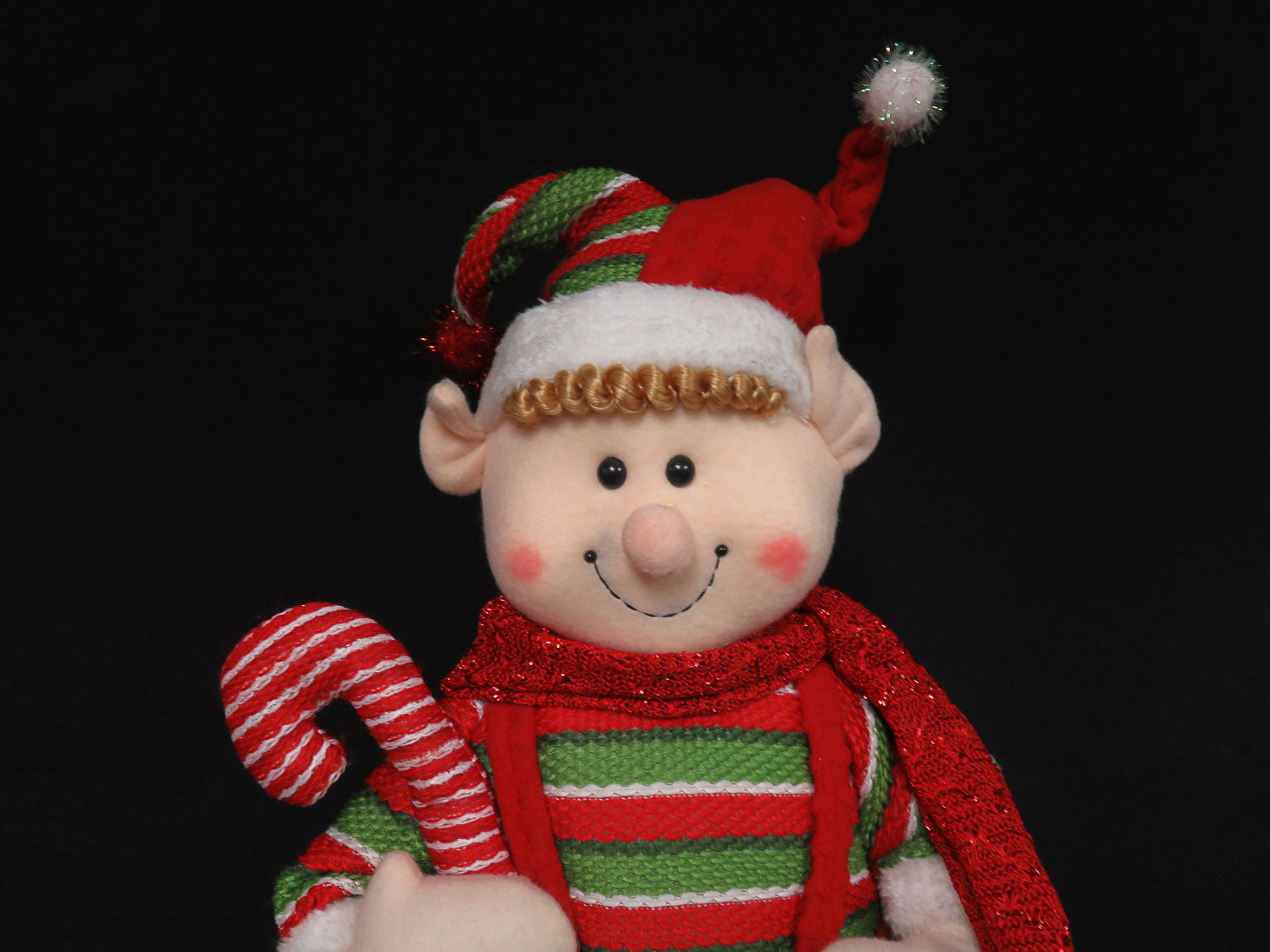 Item Number: 16135-43 Tall elf couple dressed in green and red. Wearing striped hats and curly toed shoes. 28" H