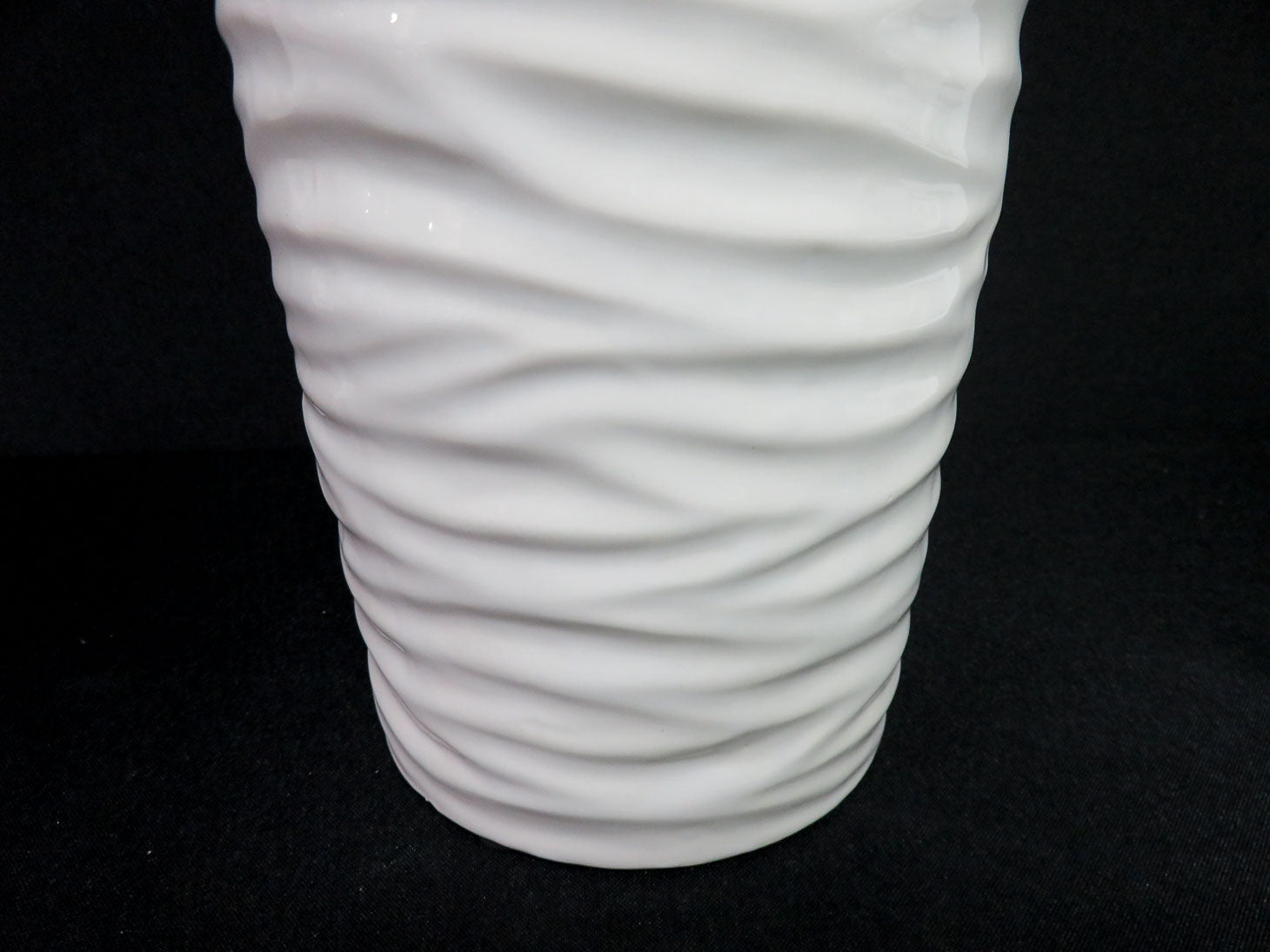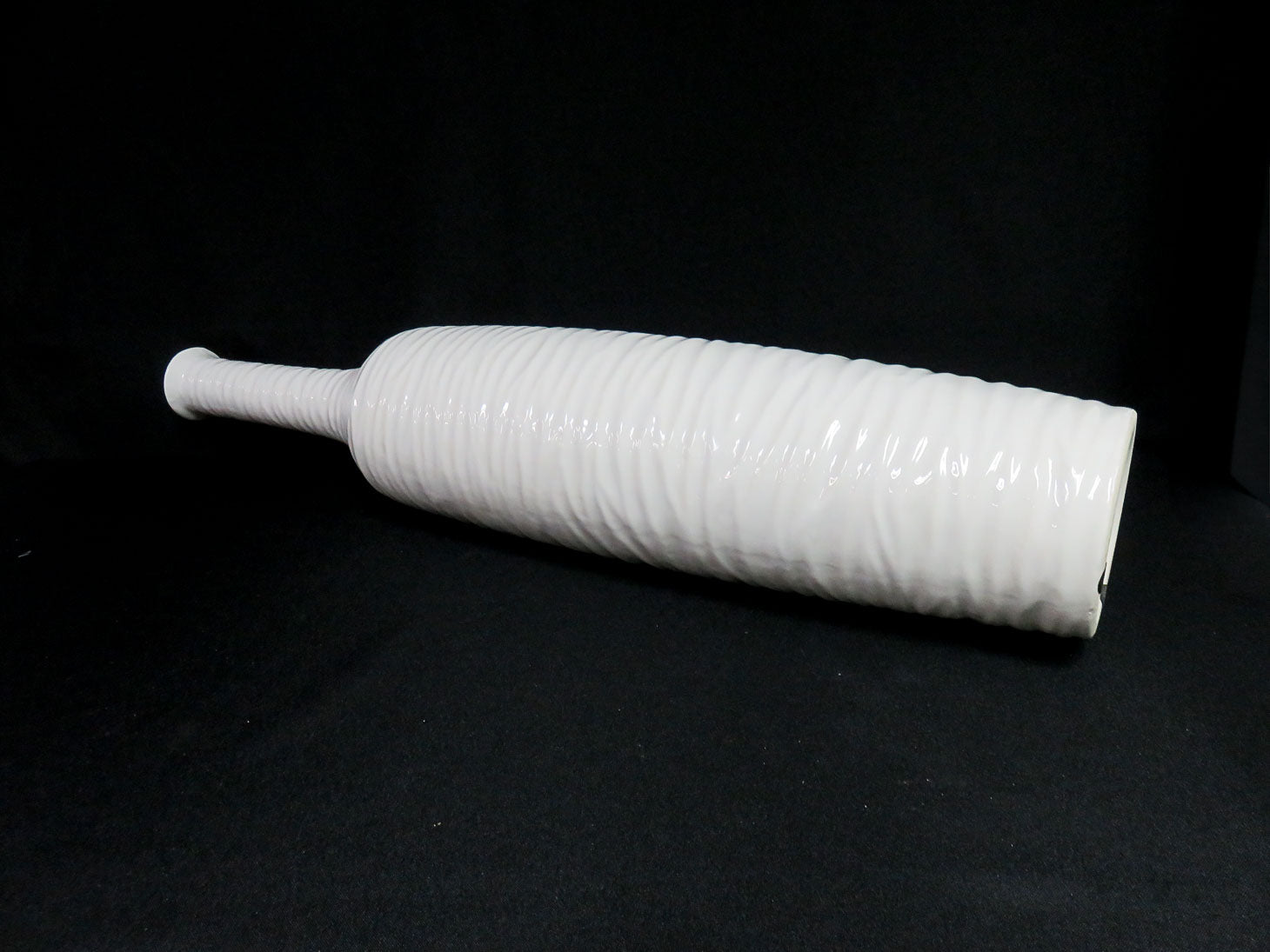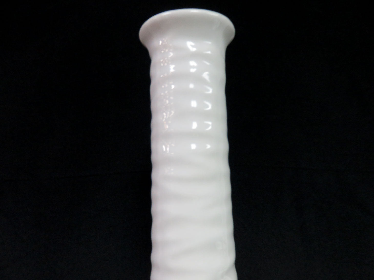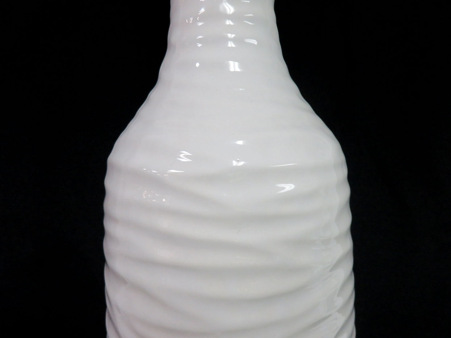 White with ripple design, cylindrical with pinched neck