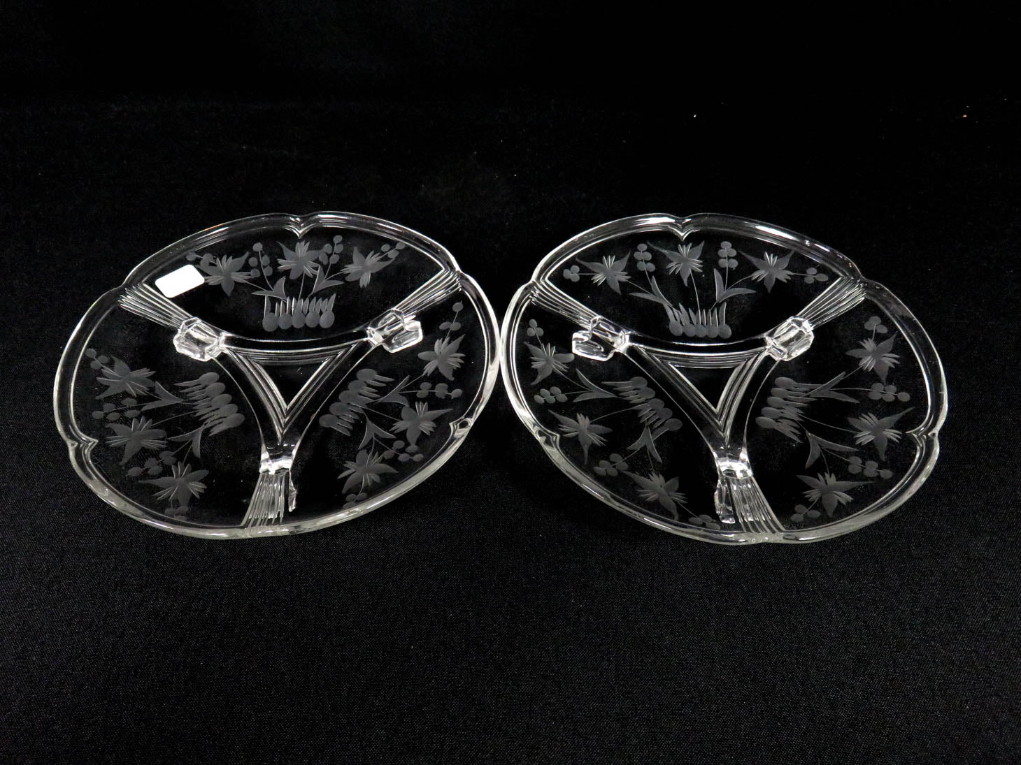 Item Number: 29810-12 Set of 2, etched flower design and footed and scalloped rim. 7"W x 1.5"H largest