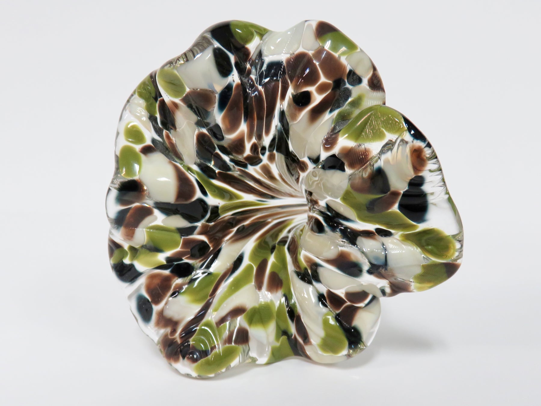 Hand blown with matching flower, sage green with brown and white speckles, tear drop shape (2 pcs)