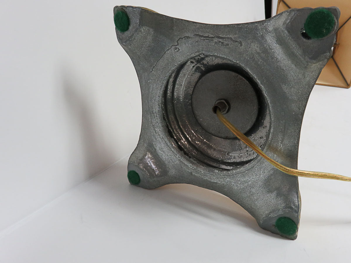 Item Number: 26138-26 Antique gold candlestick shaped lamp with gold distressed shade, loss of paint on shade. 30"H