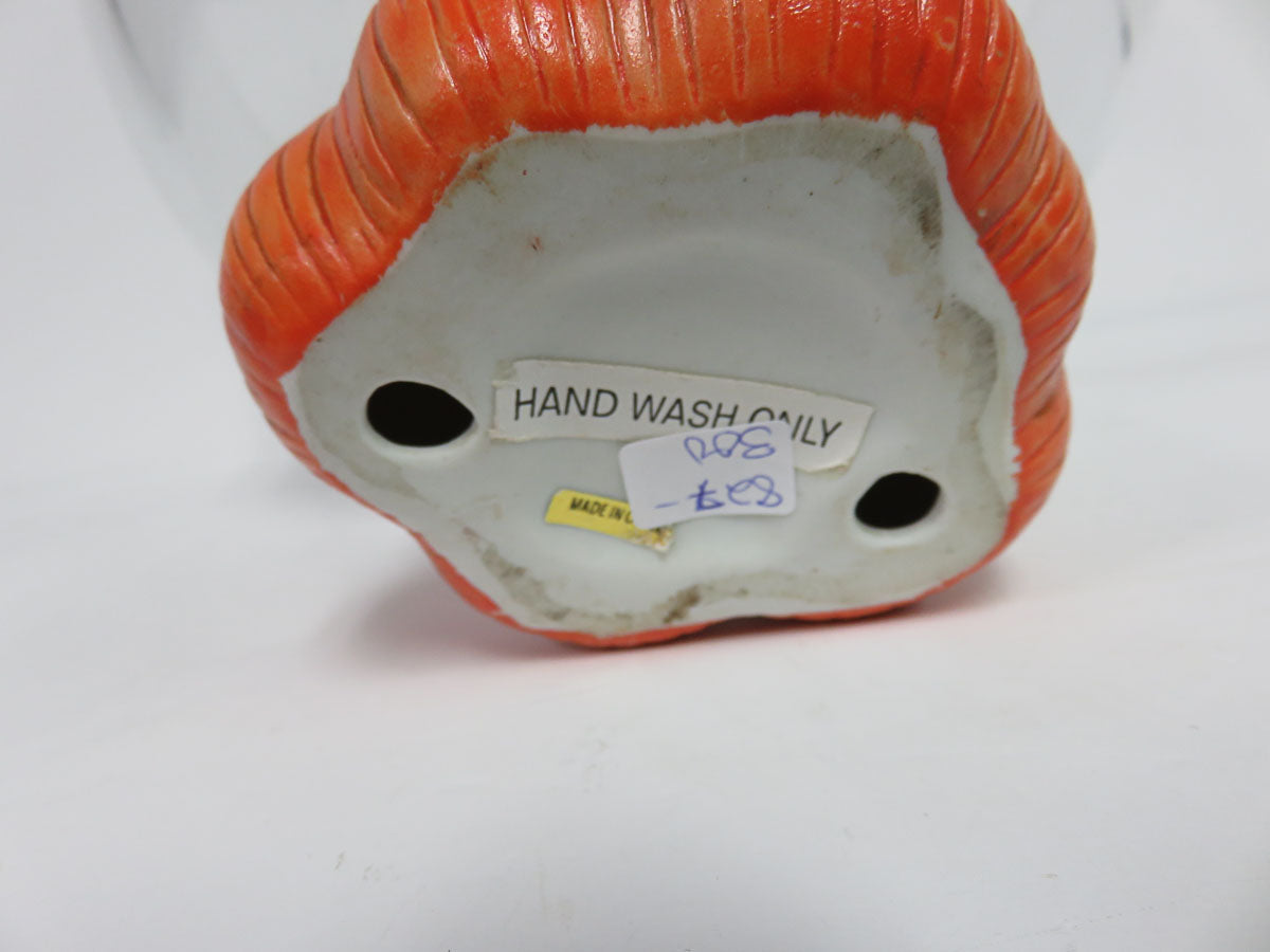 Clear bowl a top a smiling Jack o Lantern pedestal base.