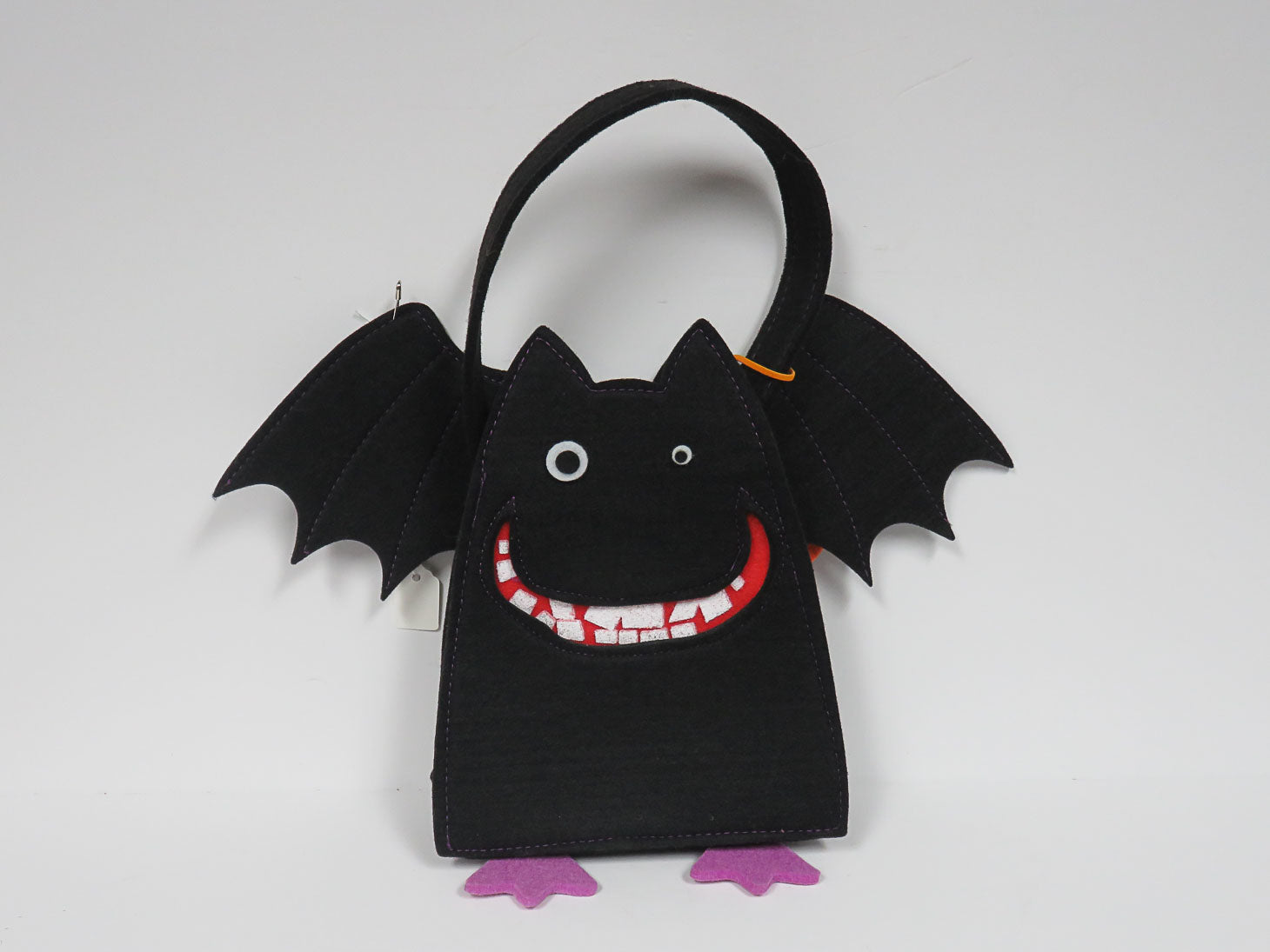 "Batty Bat" 2 sided trick or treat bag with little pumpkin medallion.
