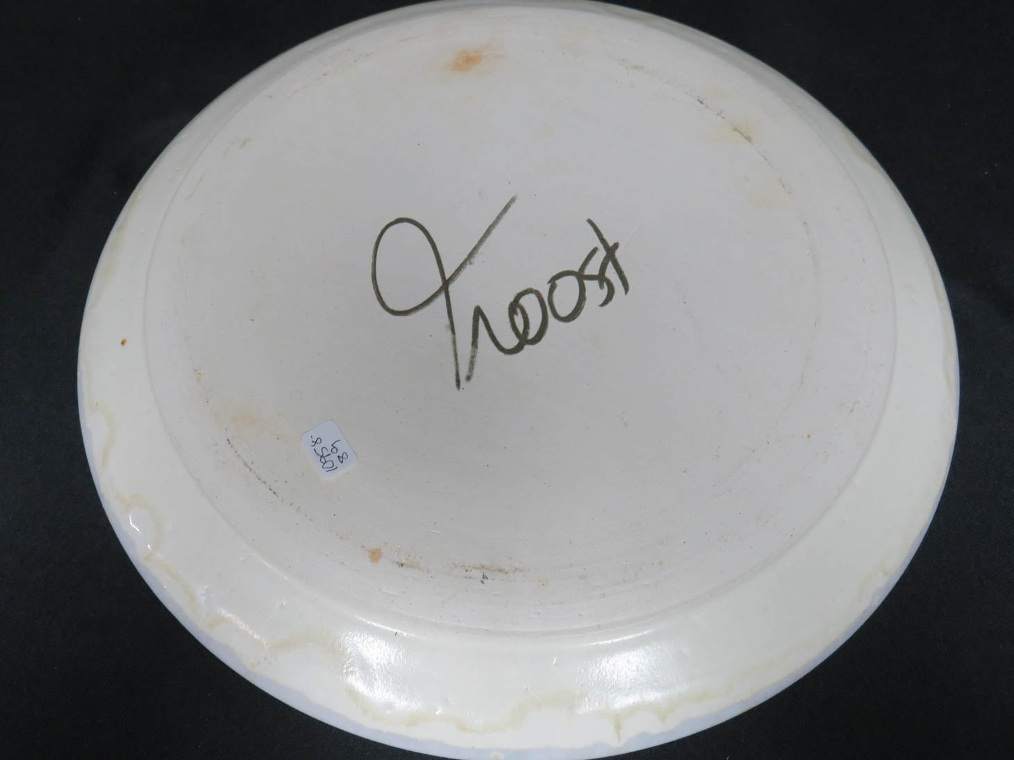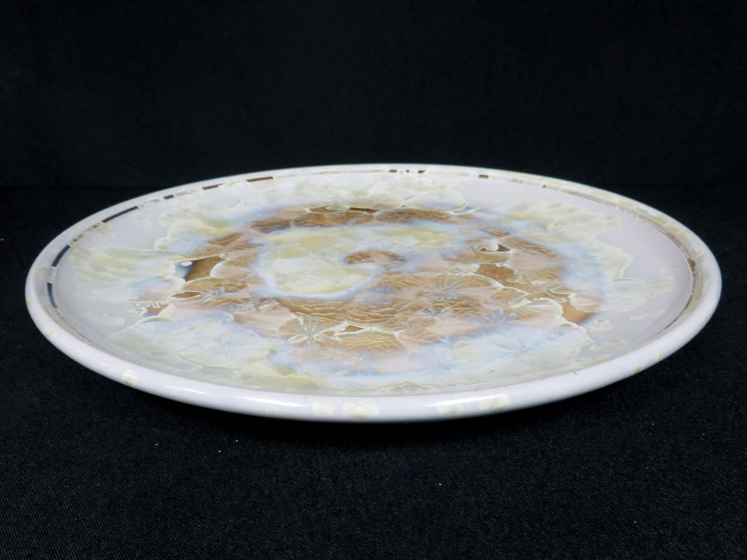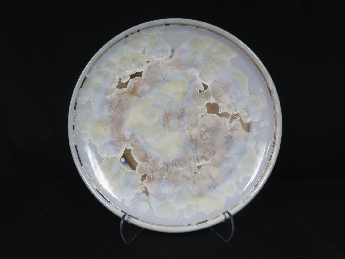 Opalescent, crystalline glaze, creamy white and tan, Hawaiian artist Robert Troost.