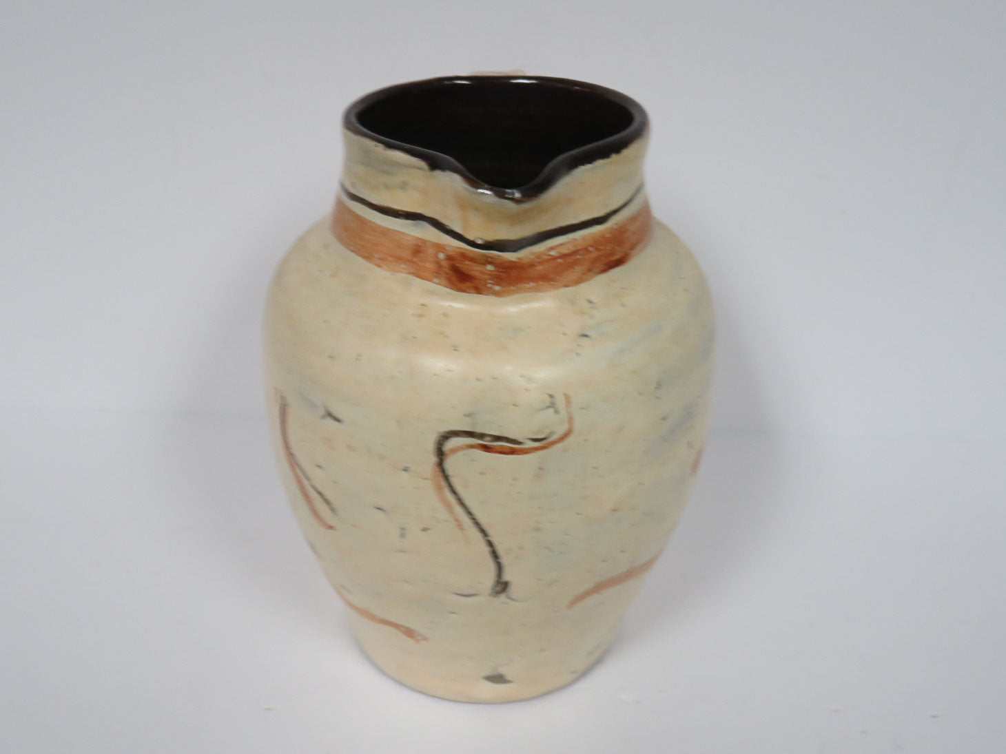 Cream and rust exterior, glazed dark brown interior