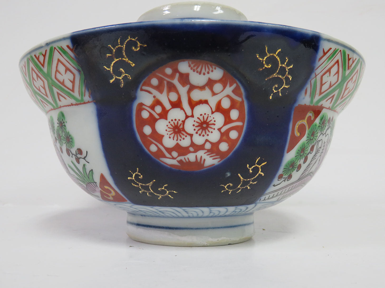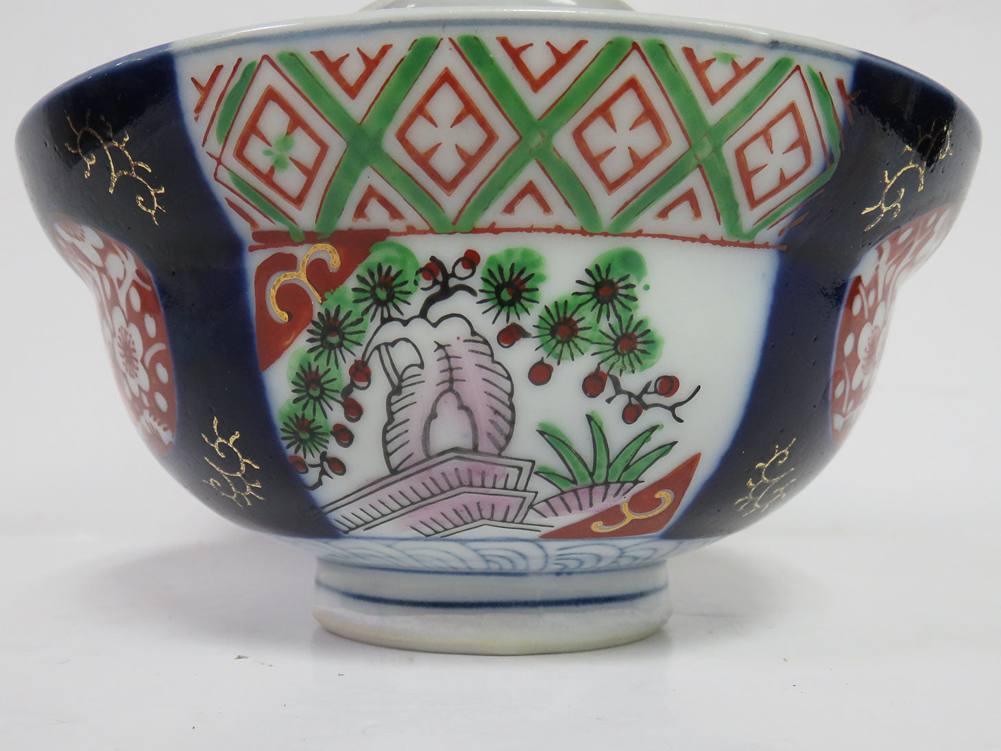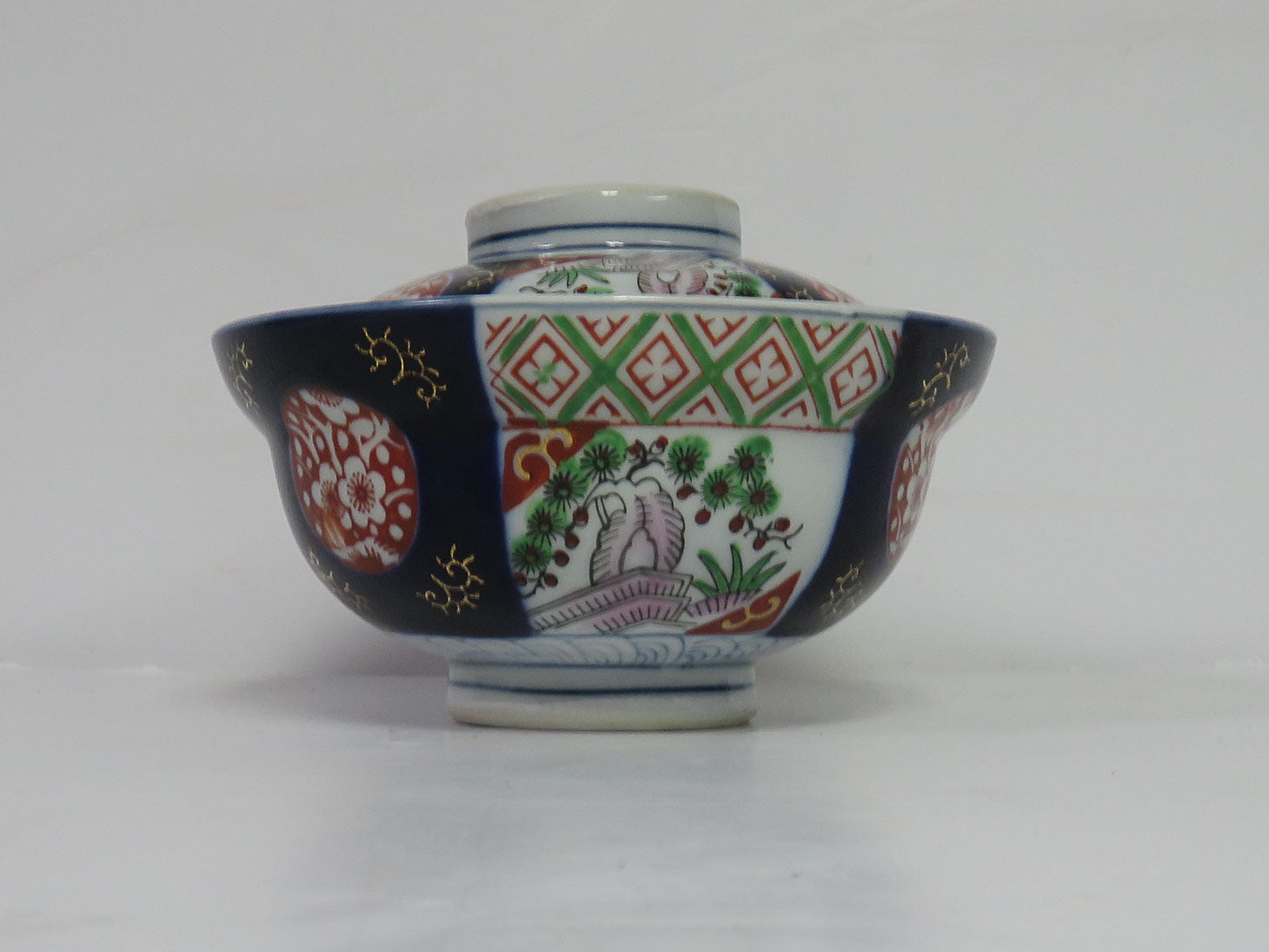 Dark blue with green, rust and gold asian accents, with lid (2 pcs)