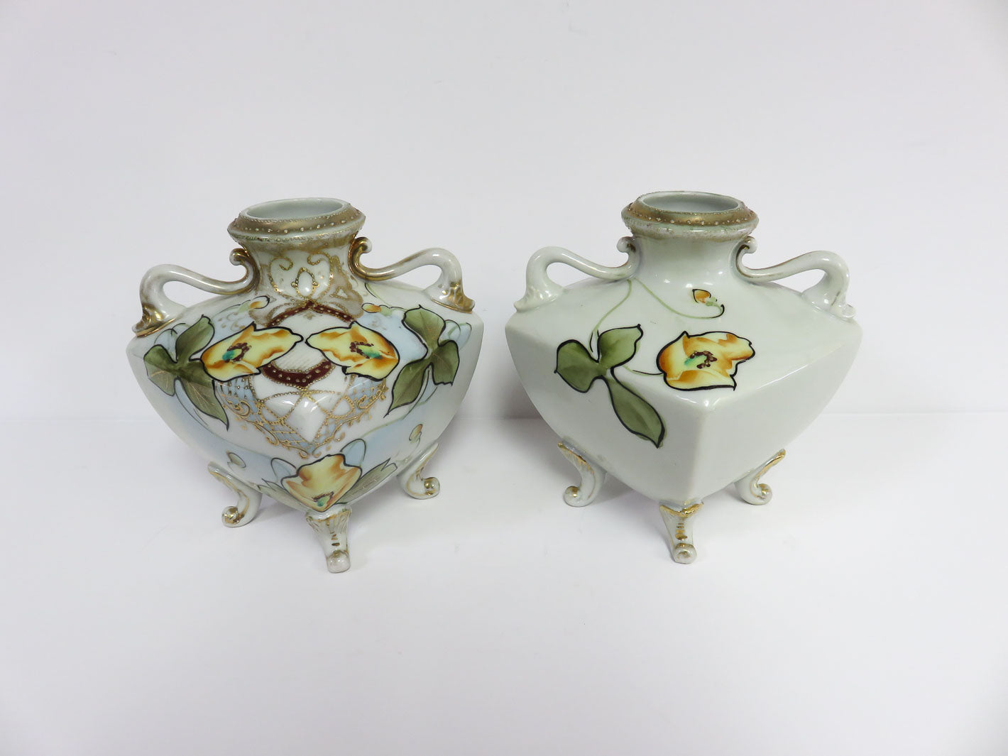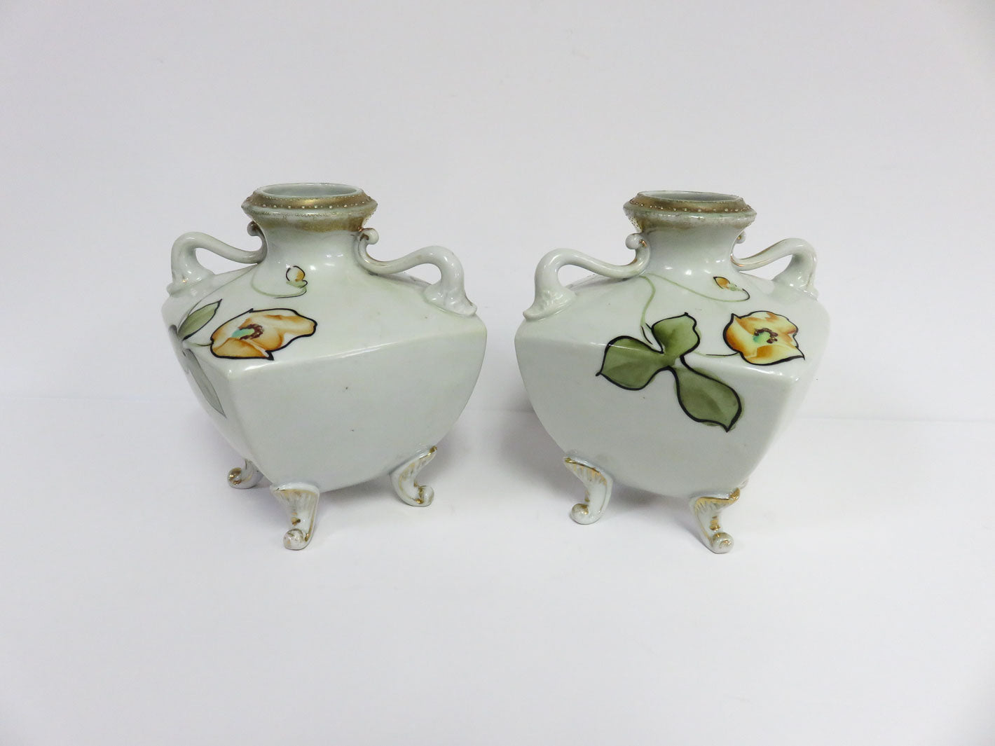 Item Number: 8217-13 Pair of antique (1913), square, footed with hand painted floral design, 2pc 5" x 5" x 6"