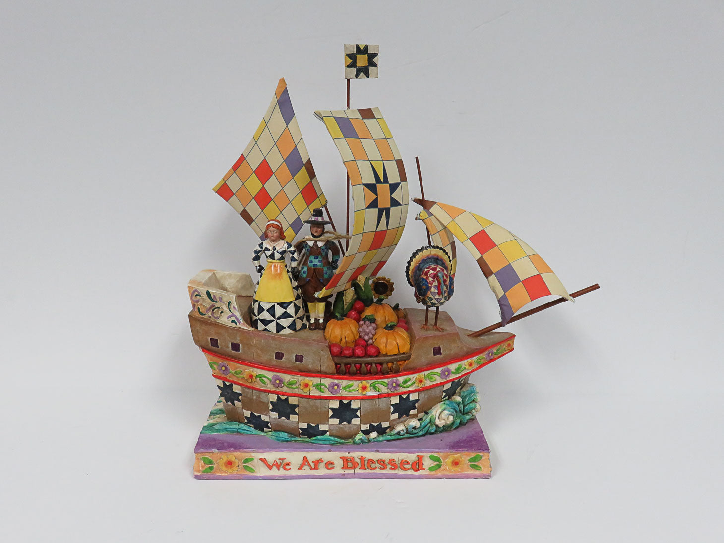 Jim Shore Pilgrim Seeking Hope Bounty and Joy Heartwood Creek Collectible Boat. "We Are Blessed"
