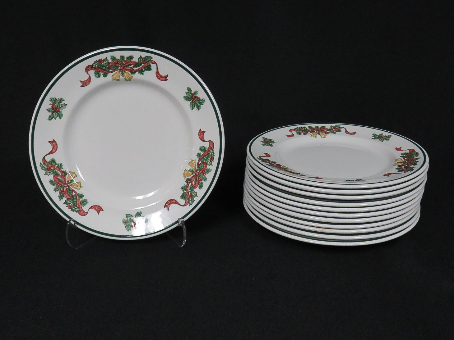 Item Number: 9992-6685 Set of 12, "Victorian Christmas", Christmas tree, holly and bells, green rim 8"