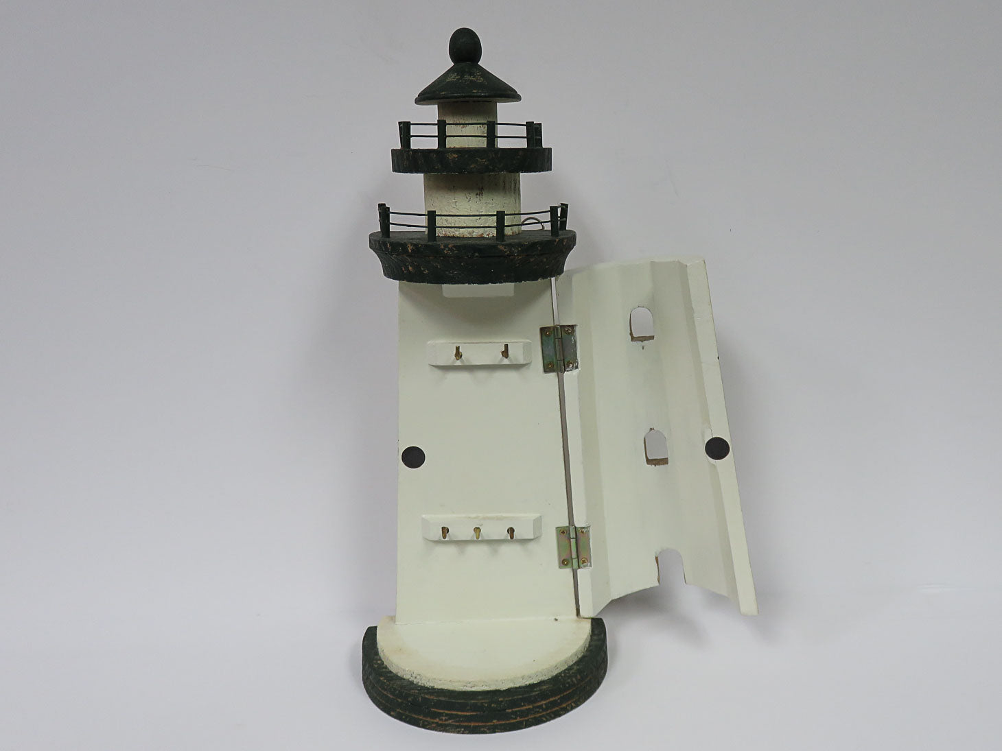 Item Number: 28709-53 Hinged door, 5 hooks inside, white and green. Wall hangers on back. 5.5" x 3.5" x 13.5"
