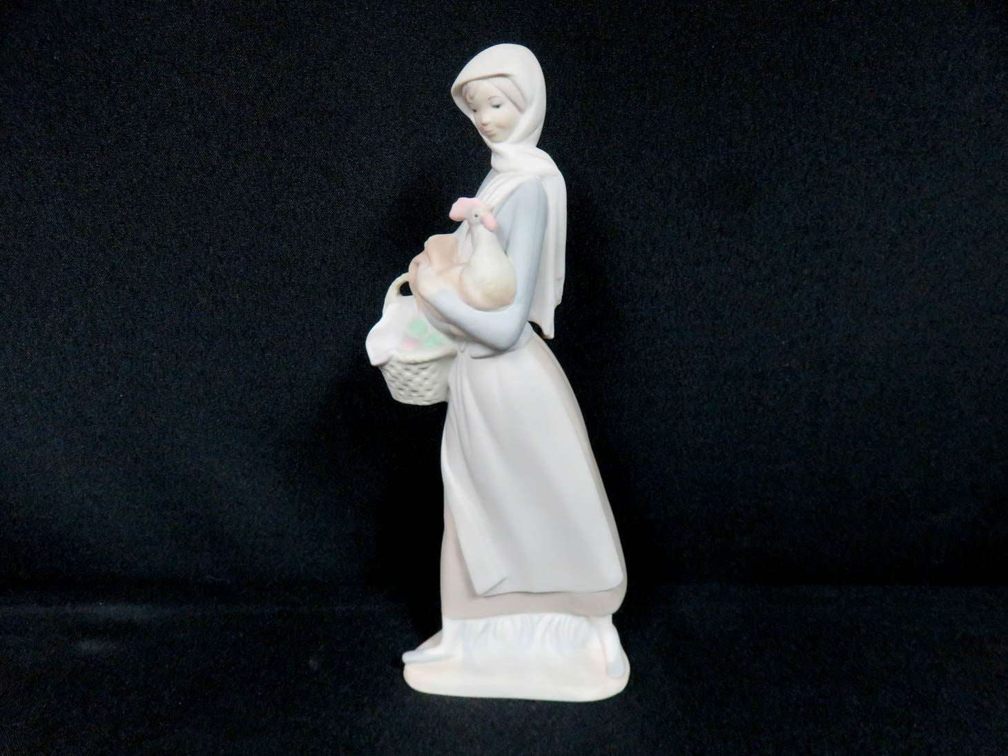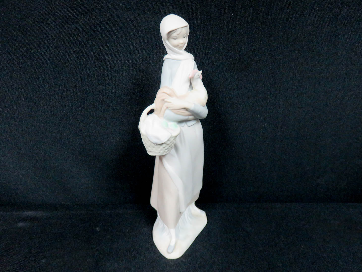 "Girl with Cockroel", #4591, matte finish, girl holding a rooster and a basket