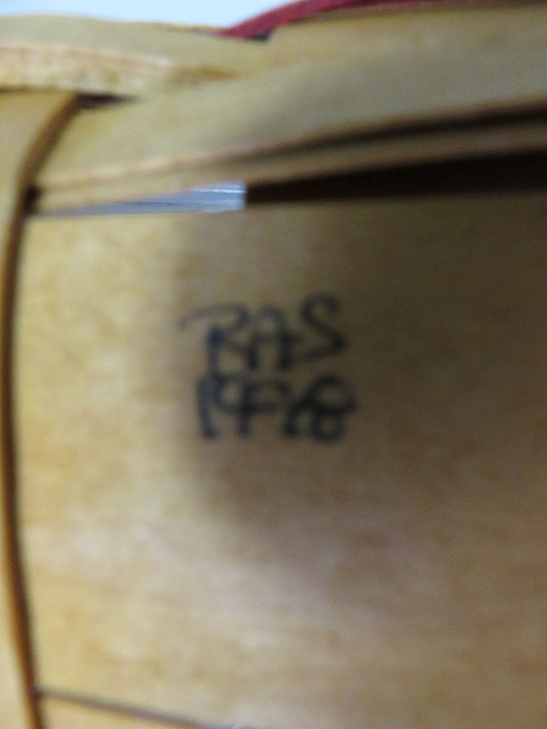 Vintage, 2 handles, red and blue accents, ceramic medallion, plastic liner, circa 1998