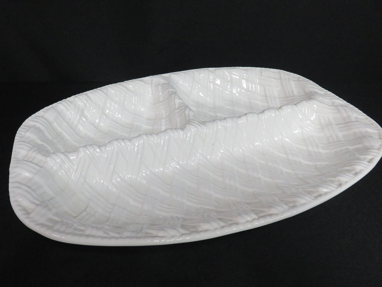 Curved rectangle, 3 sections, white with lattice weave pattern