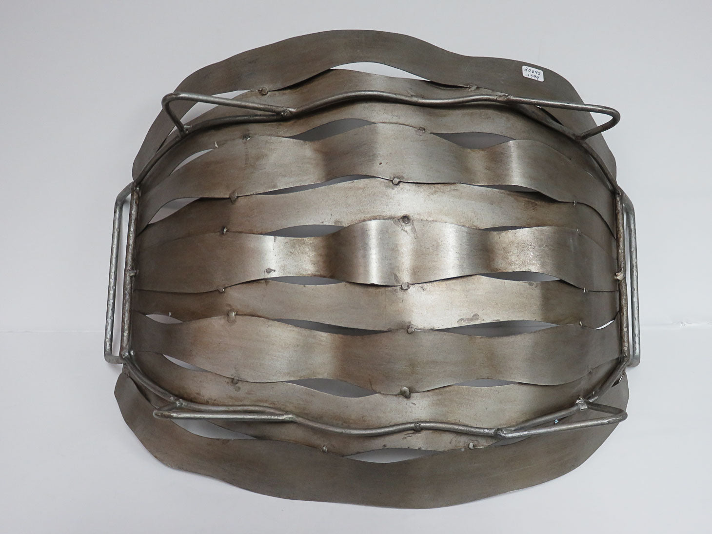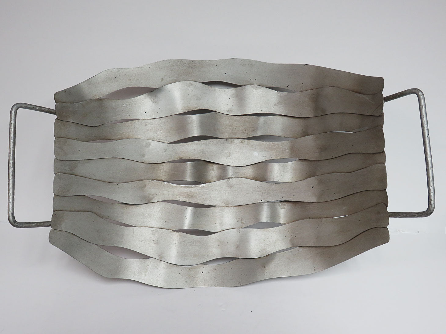 Distressed pewter colored metal, arc shape, handled wavy metal bands