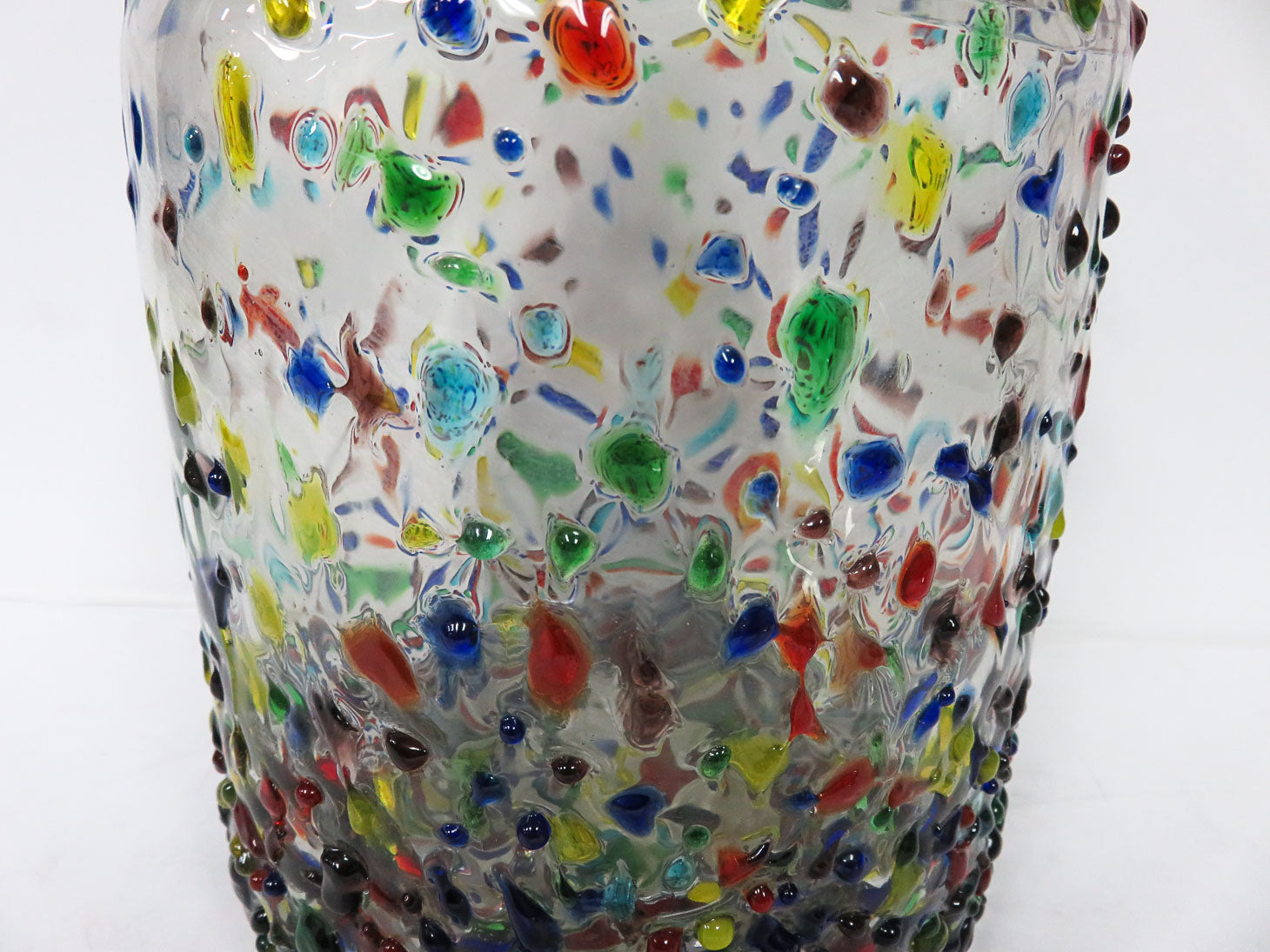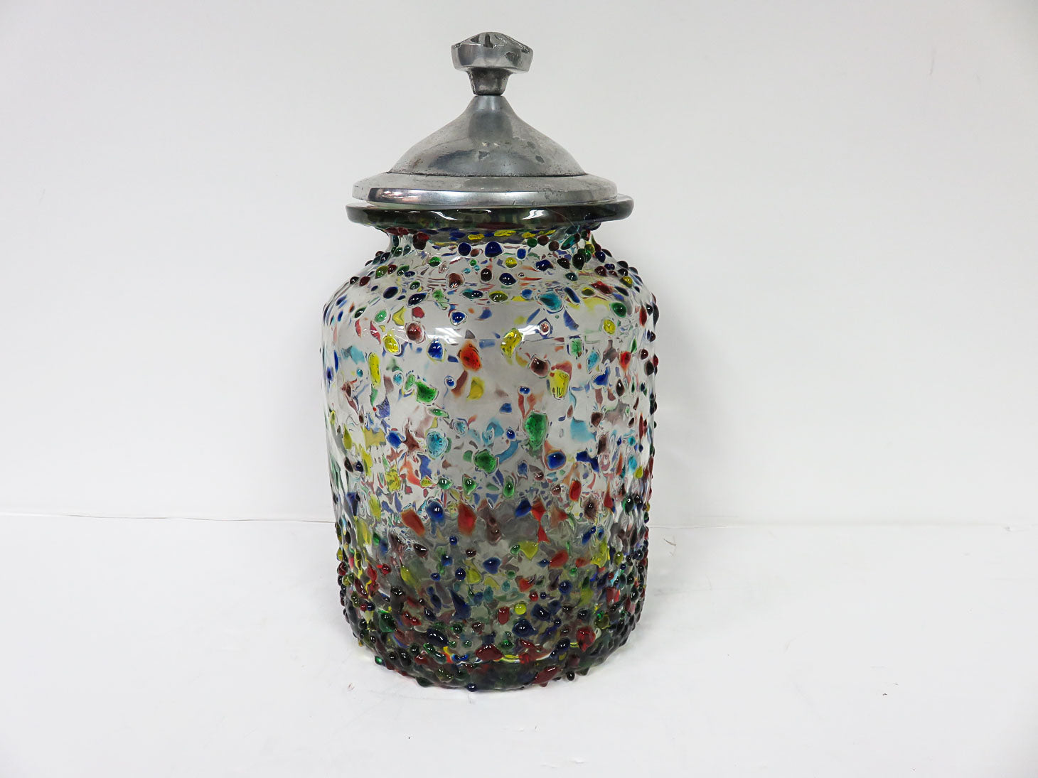 Hand blown, raised-colorful confetti design, pewter lid (2 pcs)
