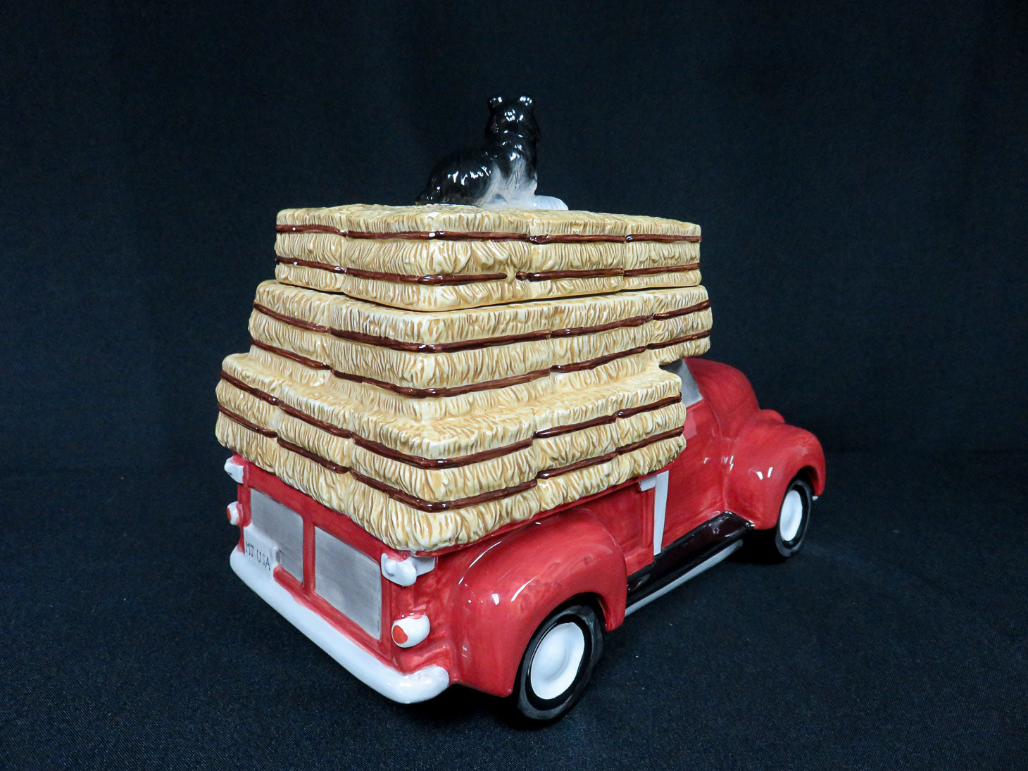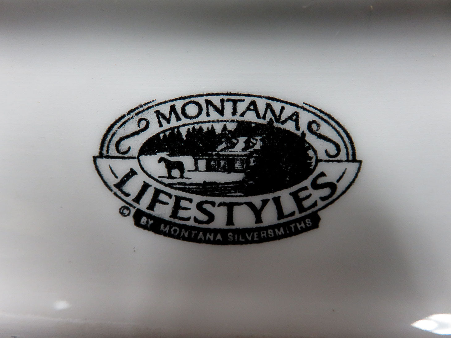 Montana Lifestyles, with hay bales and black and white sheepdog on top