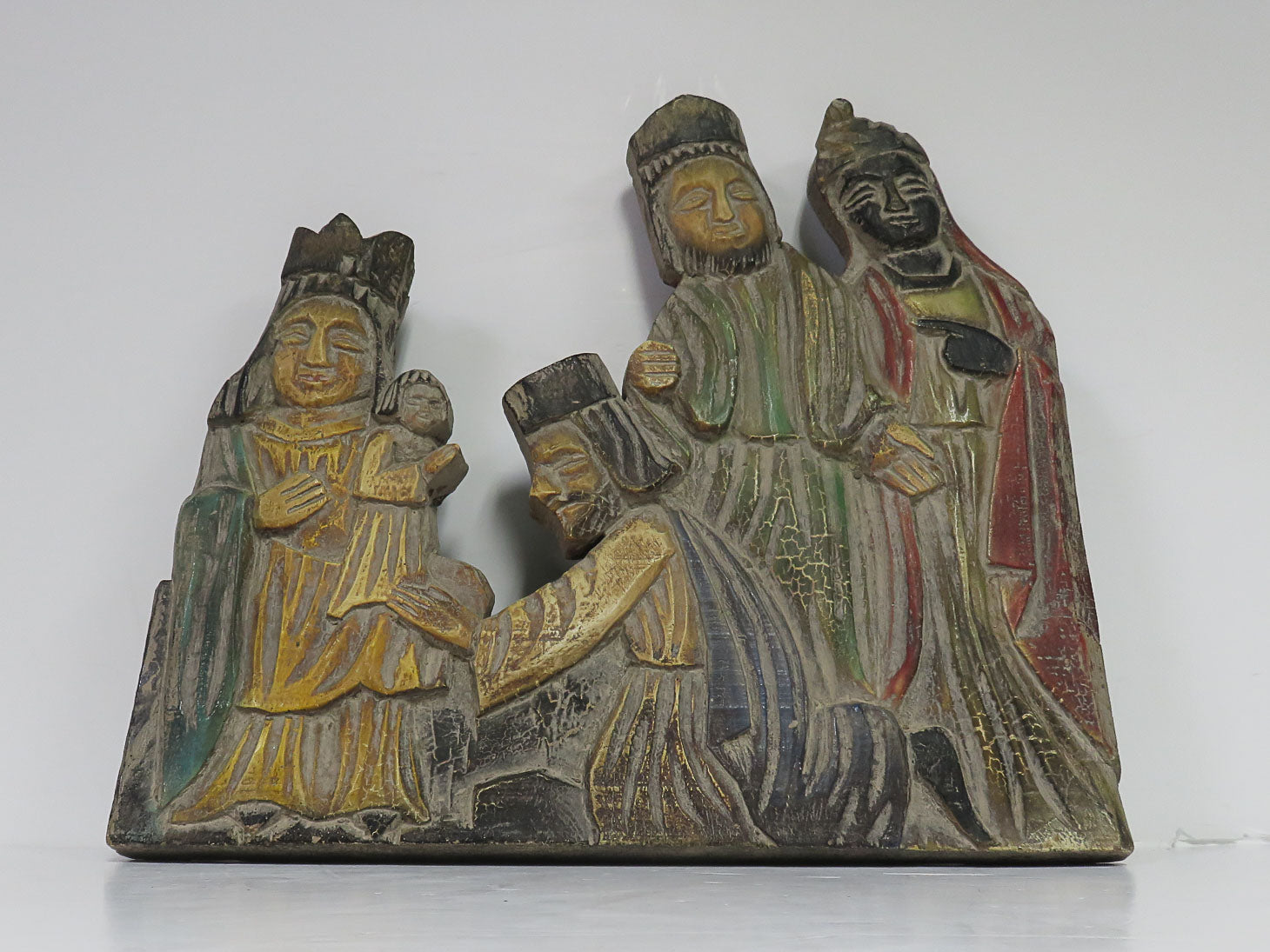Three wise men with Mary and separate Joseph. Painted with a crackle texture. Heavy. 2 pieces
