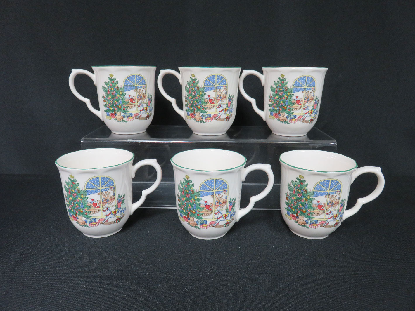 Set of 6, "Santa Window" Santa in sleigh outside window, tree inside