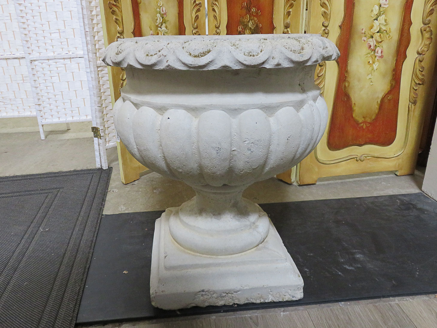 Rounded, fluted with square base. Some chips on base. Heavy!  Two available. Sold separately. #24083-78. The item 24083-79 is located in the Warehouse. Please see a manager to view.