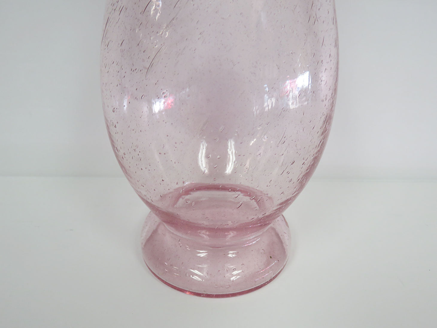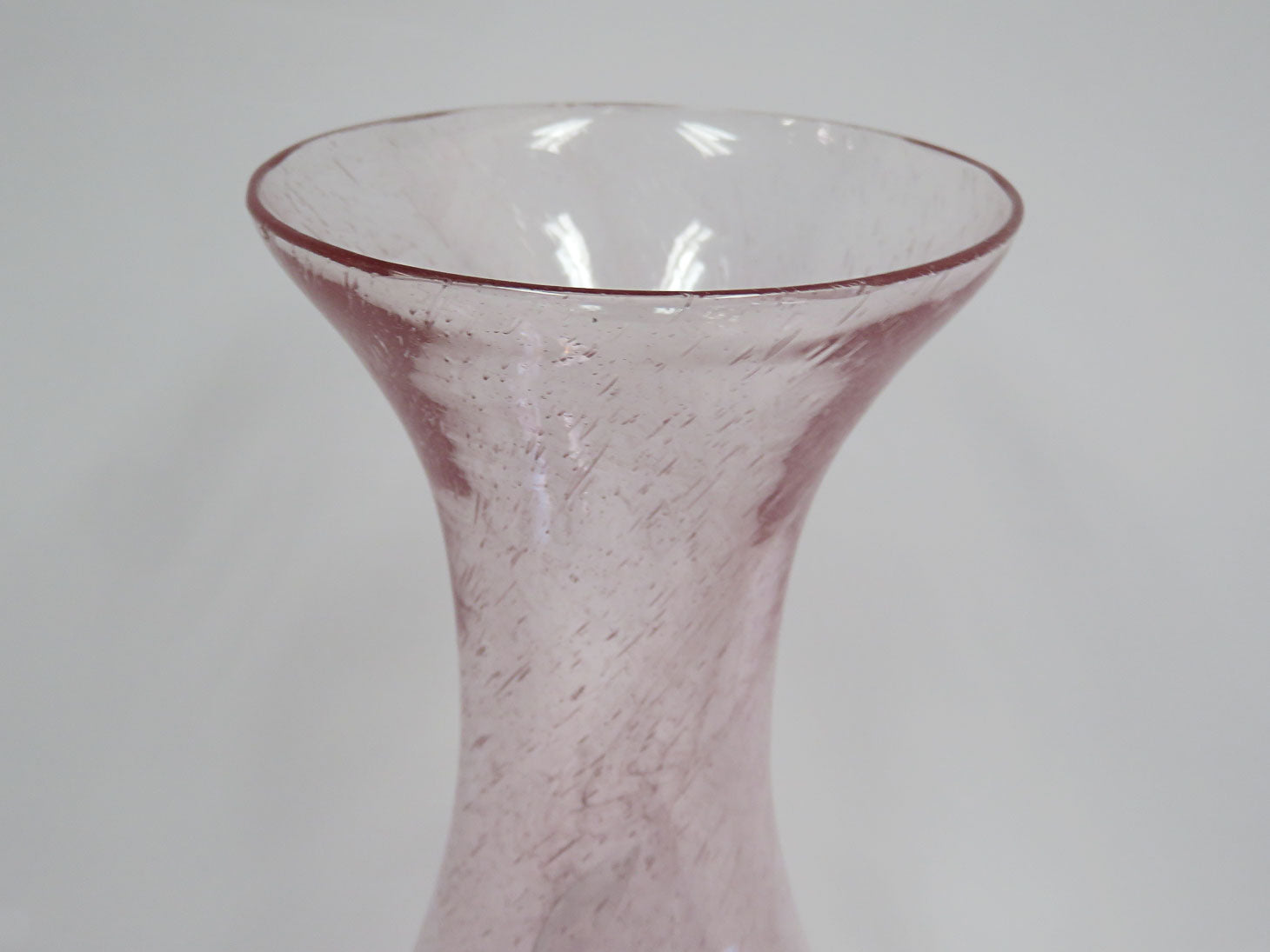 Controlled oval diagonal bubbles, pedestal base, pinched middle, flared rim