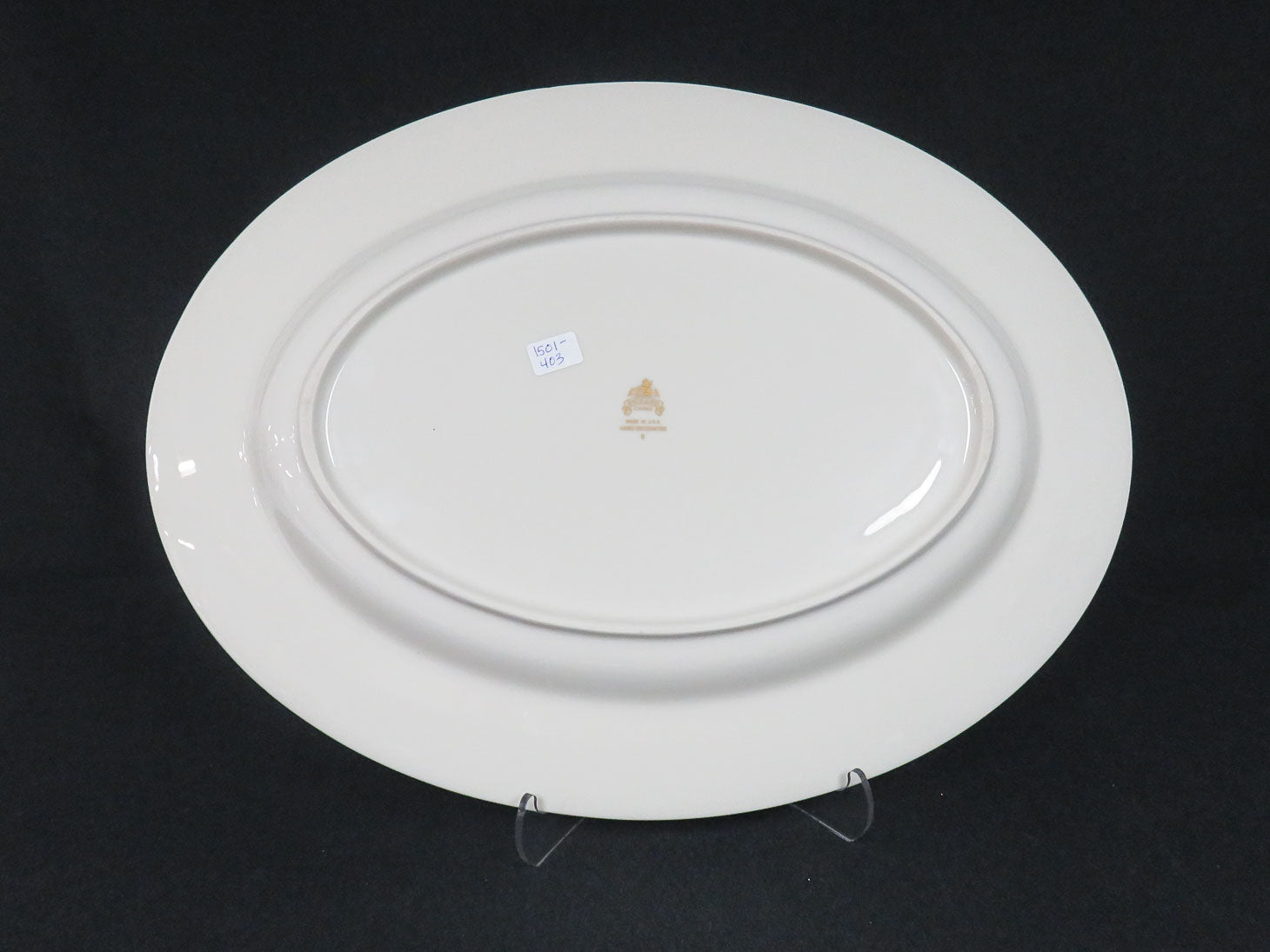 Oval with a gold rim. Hand decorated scene of turkeys in the field.