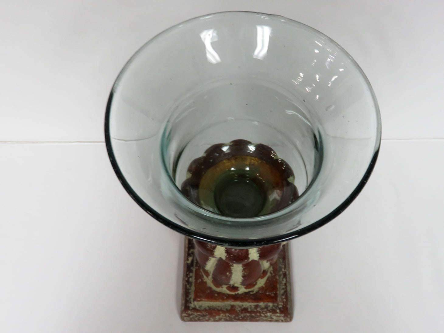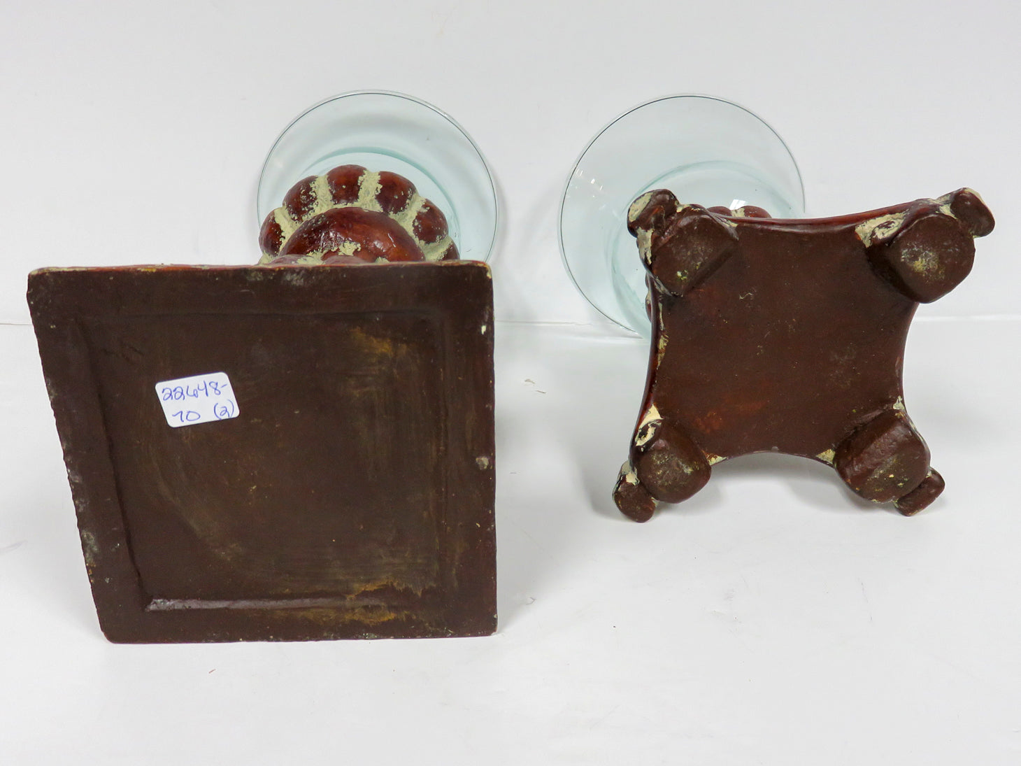 Set of 2, brown and cream on square and footed bases Large: 11.5"H, Small: 8.5"H