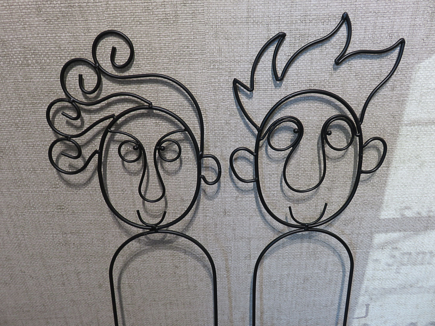 Set of 2 metal plate holders with 3 rungs with boy and girl design at top
