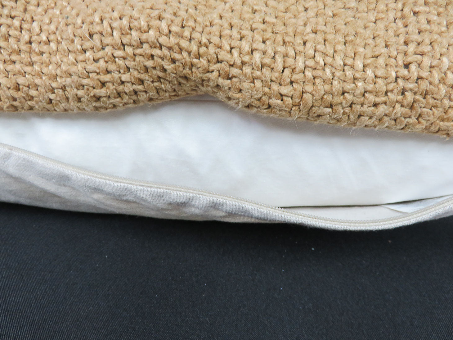 Item Number: 17301-14 Sand colored basket weave cotton linen with feathered insert. Two available, sold separately, #17301-15. 20" x 20"
