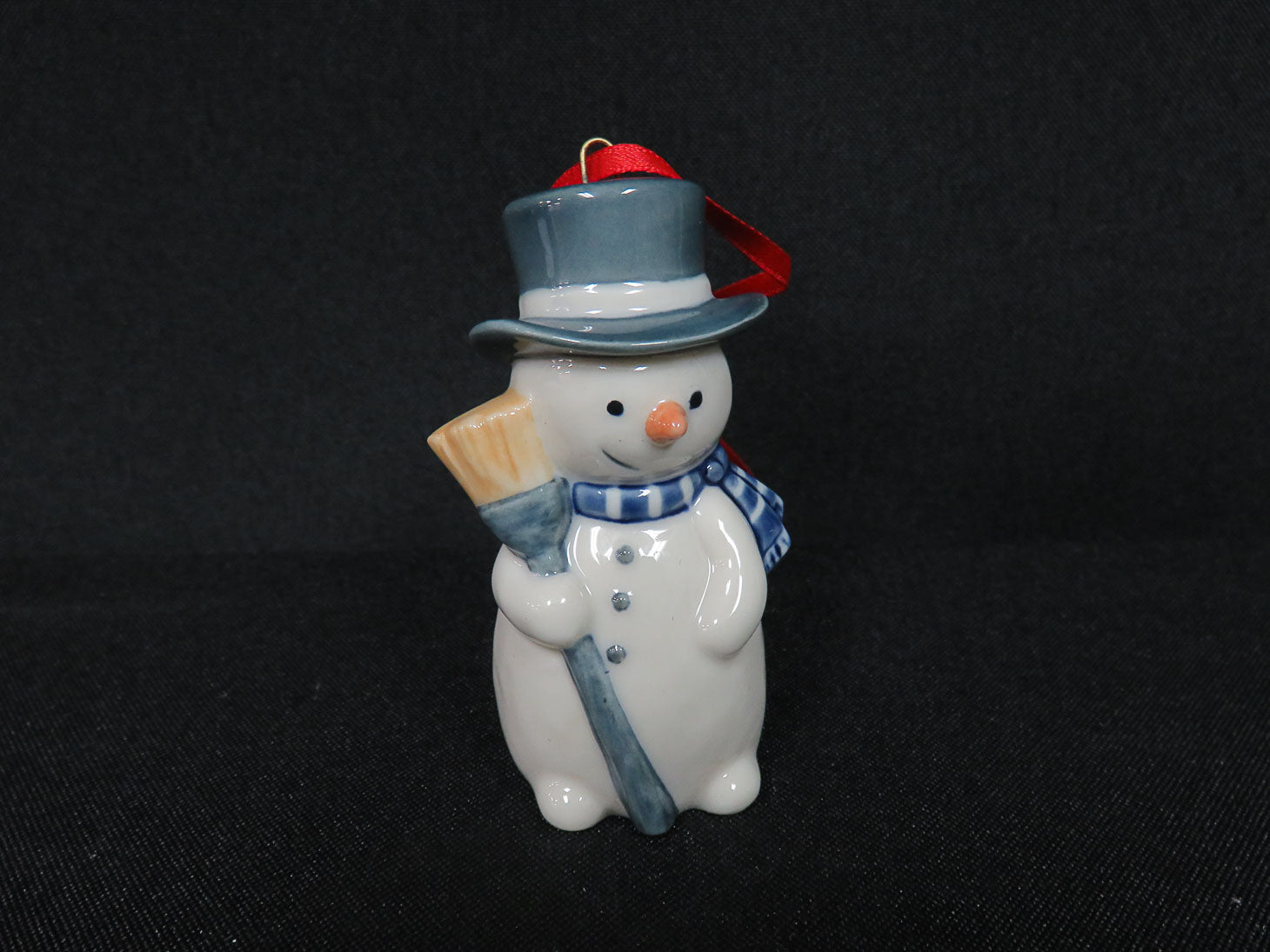 #735 Snowman, blue and white checked scarf, black top hat