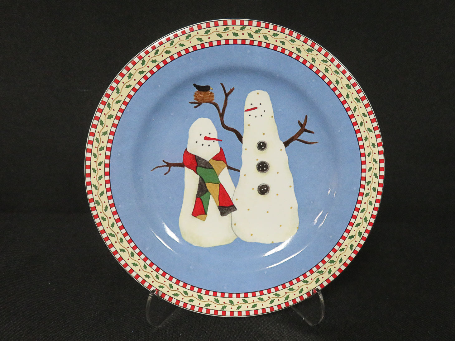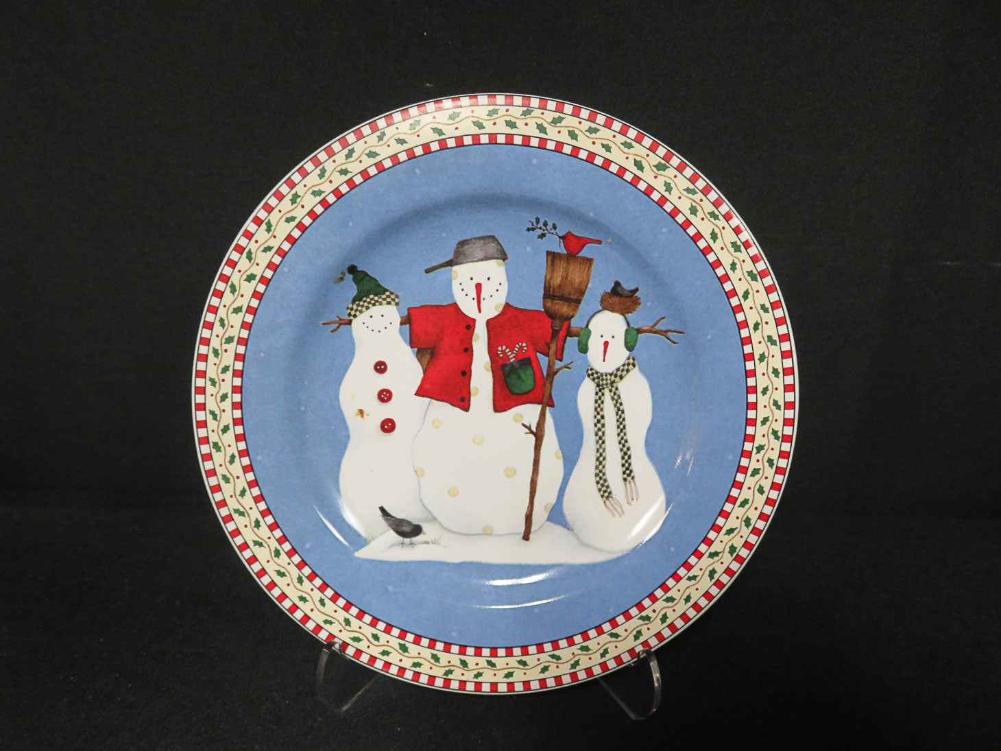 Set of 8, various snowman designs, blue background, Debbie Mumm Sakura Vintage.